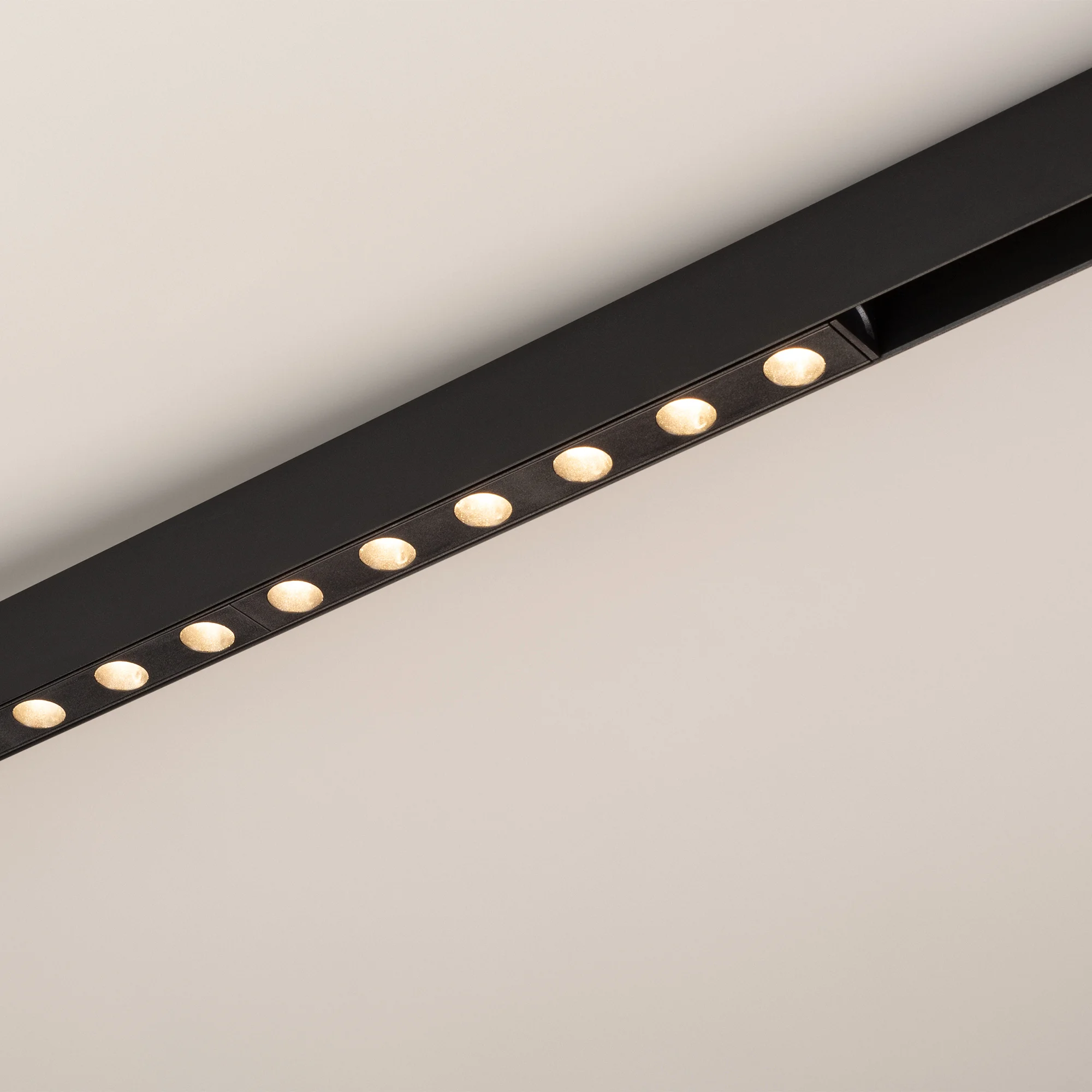 Светильник для магнитных треков MAG-ORIENT шириной 26 мм. Мощность 12 Вт, св. поток 980 лм, 82 лм/Вт, теплый 3000 K, CRI>90, угол 30°, напряжение питания 48 В. Черный прямоугольный корпус из металл, экран поликарбонат, степень защиты IP20. Размер:длина 232 мм, ширина 23 мм, высота 99 мм. Монтаж на трек MAG-ORIENT. Пульсация <1%.