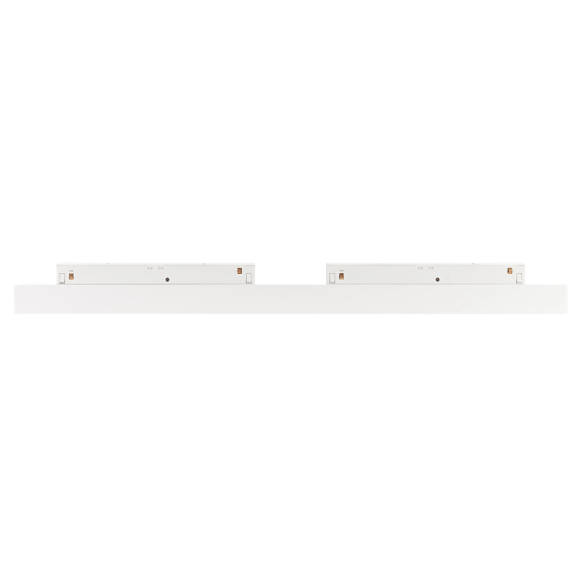 Светильник для магнитных треков MAG-ORIENT шириной 26 мм. Мощность 16 Вт, св. поток 870 лм, 55 лм/Вт, теплый 3000 K, CRI>90, угол 24°, напряжение питания 48 В. Белый прямоугольный корпус из металл, экран поликарбонат, степень защиты IP20. Размер: длина 462 мм, ширина 22 мм, высота 42 мм. Монтаж на трек MAG-ORIENT. Пульсация <1%.