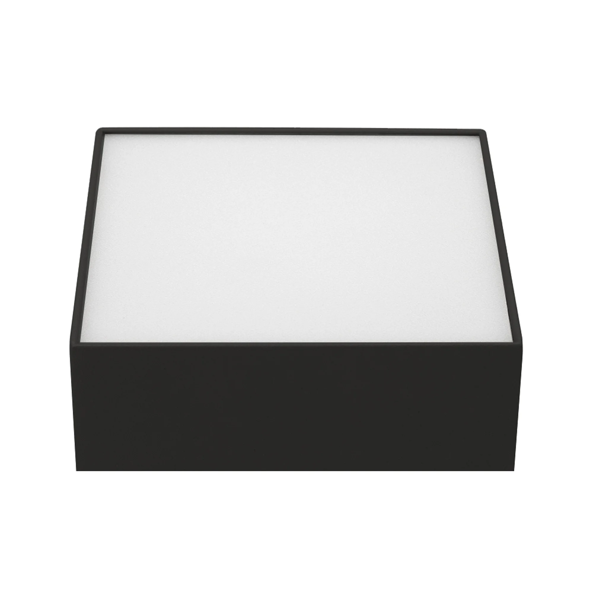 Накладной светильник. Мощность 16 Вт, св. поток 825-1000 лм, 63 лм/Вт, теплый 3000 K, CRI>90, угол 120°, напряжение питания 230 В. Черный квадратный корпус из алюминия, экран PC, степень защиты IP40. Размер: длина 175 мм, ширина 175 мм, высота 59 мм. Монтаж накладной. Драйвер 26-40 В, 400 мА, пульсация <5%.