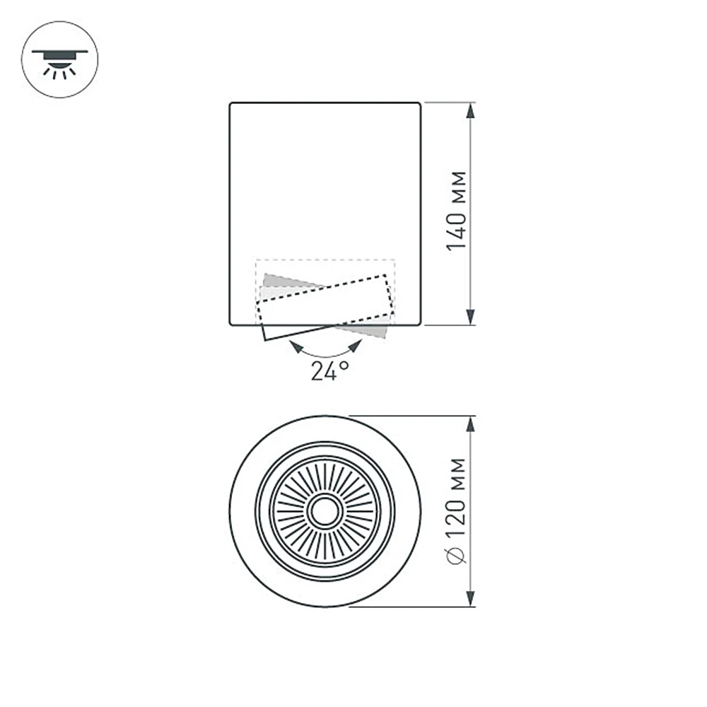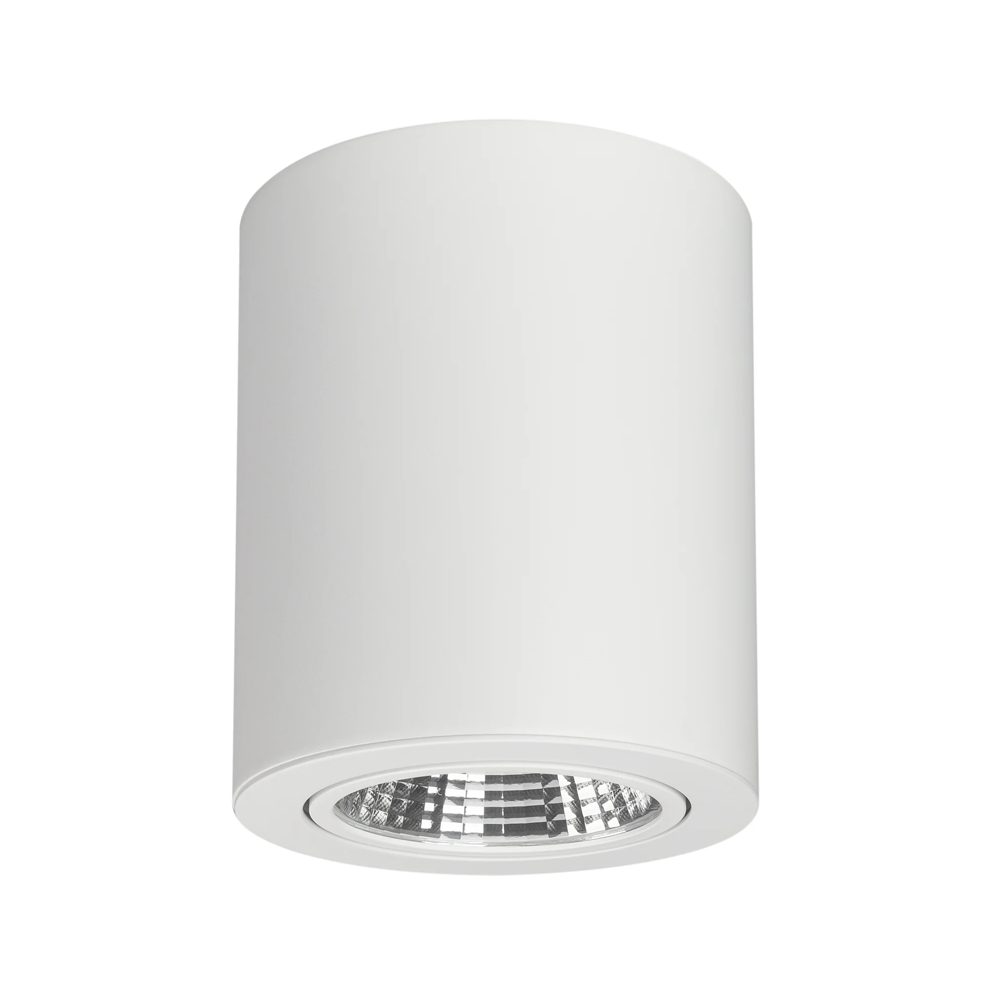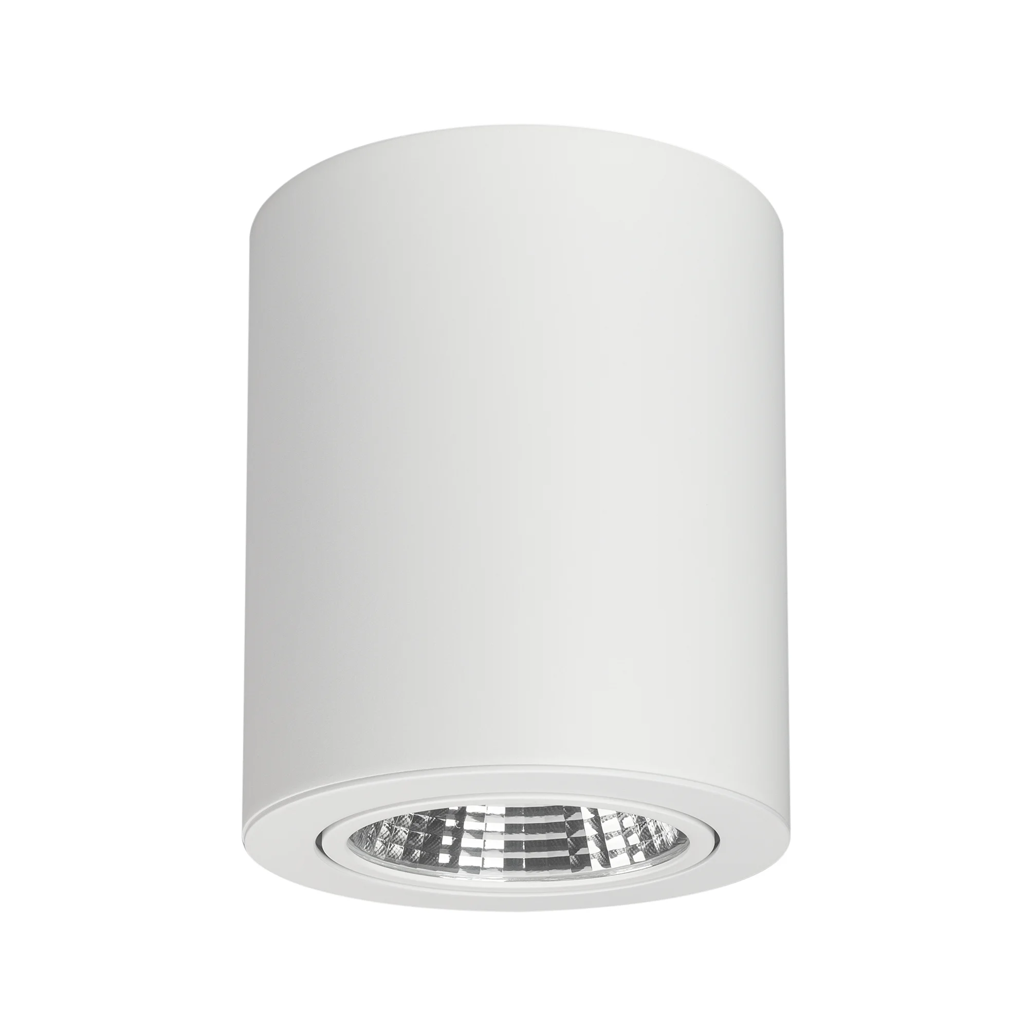 Накладной светильник 16Вт, белый корпус цилиндр. Цвет ТЕПЛЫЙ БЕЛЫЙ 3000K, св.поток 1280-1440лм, CRI(Ra)>80, наклоняемая ось, угол 24°. Размер Ф120×140 мм. Питание AC 180-240V, 16Вт, встроенный драйвер (DC 400mA 37V).