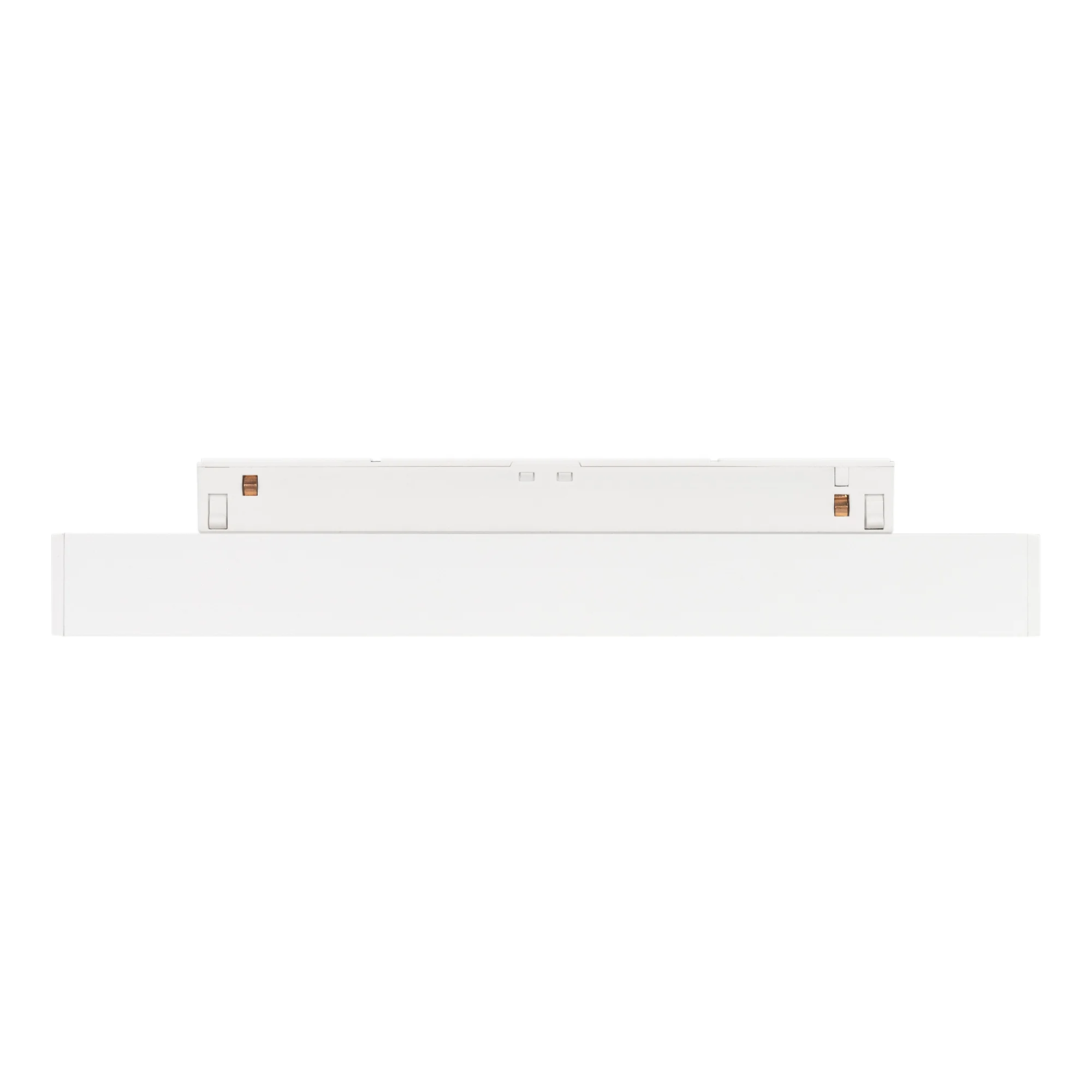 Светильник для магнитных треков MAG-ORIENT шириной 26 мм. Мощность 8 Вт, св. поток 440 лм, 55 лм/Вт, теплый 3000 K, CRI>90, угол24°, напряжение питания 48 В. Белый прямоугольный корпус из металл, экран поликарбонат, степень защиты IP20. Размер: длина 235 мм, ширина 22 мм, высота 42 мм. Монтаж на трек MAG-ORIENT. Пульсация <1%.