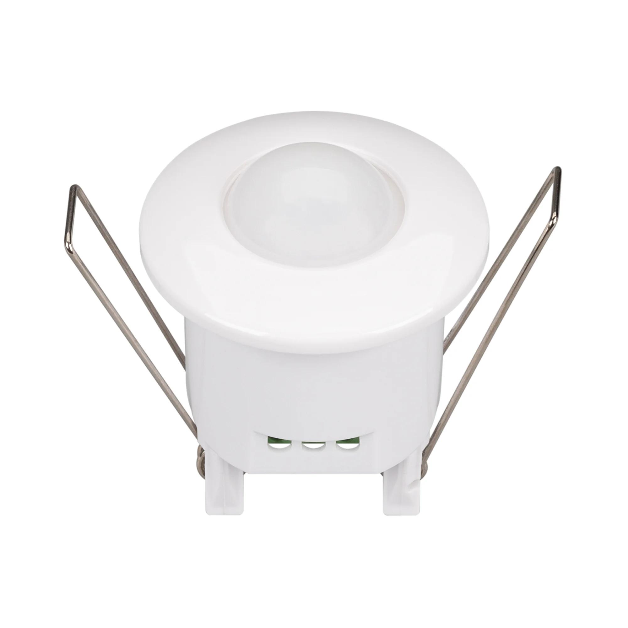 Инфракрасный датчик движения, совмещенный с датчиком освещенности. Высота установки 1 -1.8 м. Угол обнаружения 160°. Настройки: время отключения (10 c – 7 мин), зона срабатывания (до 9 м), освещенность (3-2000 лк). Максимальная нагрузка 500 Вт (для ламп накал-я и галогенных), 200 Вт (для энергосберегающих ламп), габаритные размеры (L×W×H) 81.95×82.1×44.4 мм.