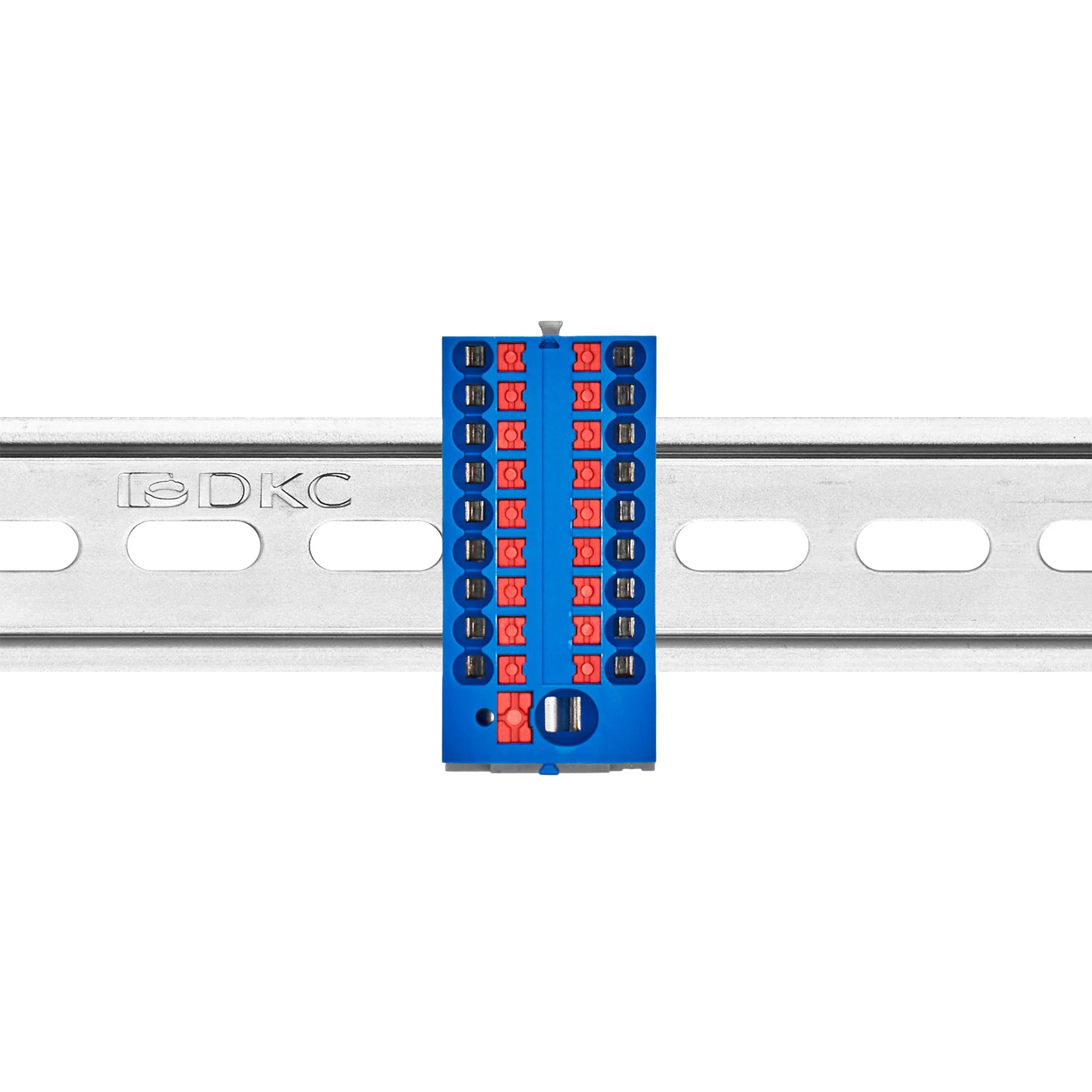 Проходная клемма с винтовым зажимом предназначена для соединения двух проводников. Монтаж на DIN-рейку OMEGA. Температура эксплуатации от -60 до +105°C. Корпус выполнен из ПА 6.6 с классом горючести V0 UL-94. Синий цвет, 2 точки подключения, 35 мм2. 1 канал винтовых перемычек. Габариты (В×Ш×Г) 59,5×56,4×16 мм.