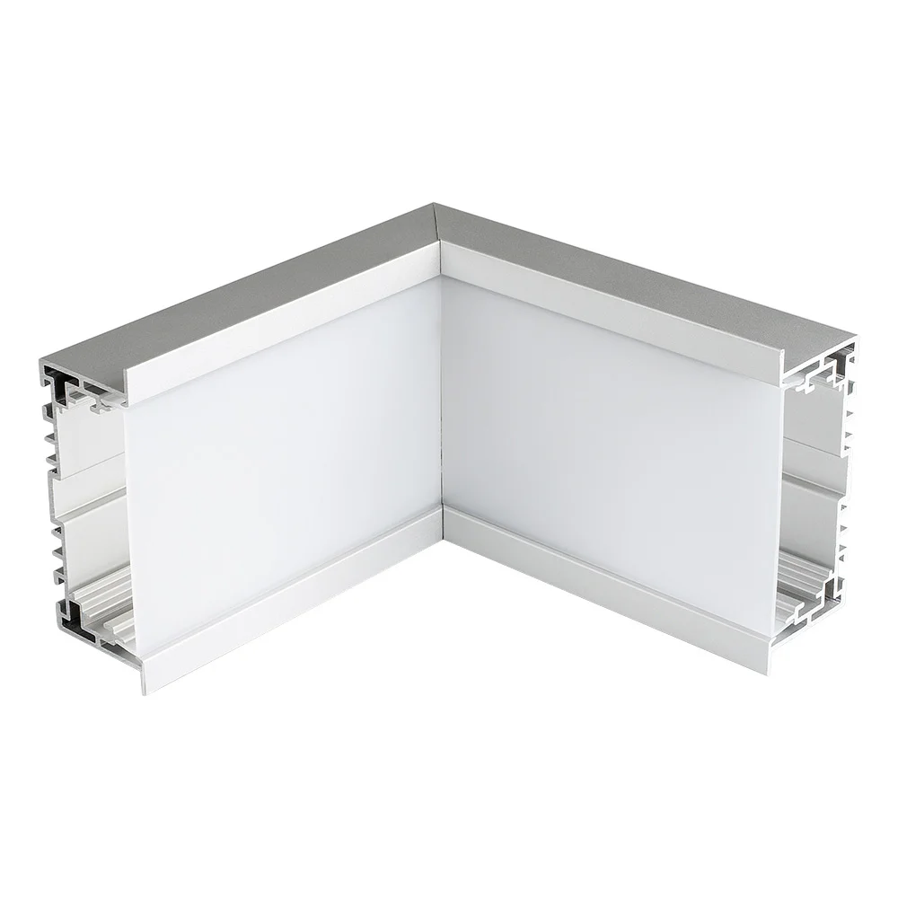 Внутренний прямой угол в сборе для соединения 2-х профилей S2-LINIA94-F под прямым углом 90°. Экран образует линию внутри угла. В комплекте матовый экран, соединители. Длина внешней стороны угла 150мм.
