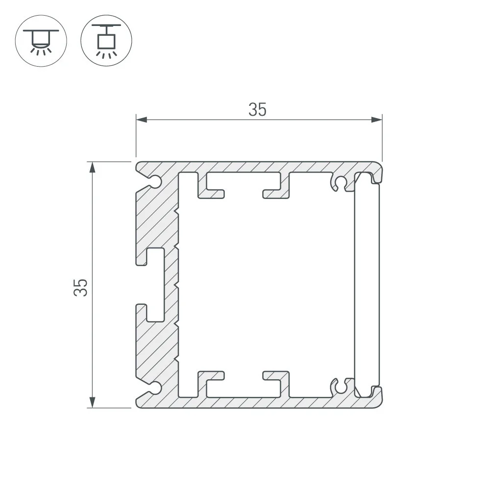 Алюминиевый профиль для составления круга диаметром 1500мм, для радиусной светодиодной линейки, с выводом свечения вниз, длина 1/8 от круга 1500мм. Внутренний диаметр круга 1465мм, внешний диаметр круга 1535мм. Цвет — белый RAL9003 (порошковая окраска). Габаритные размеры (L×W×H): 589,05x35x35 мм. Ширина площадки для ленты — 24 мм. Профиль укомплектован рефлектором. Экраны, заглушки и другие аксессуары приобретаются […]