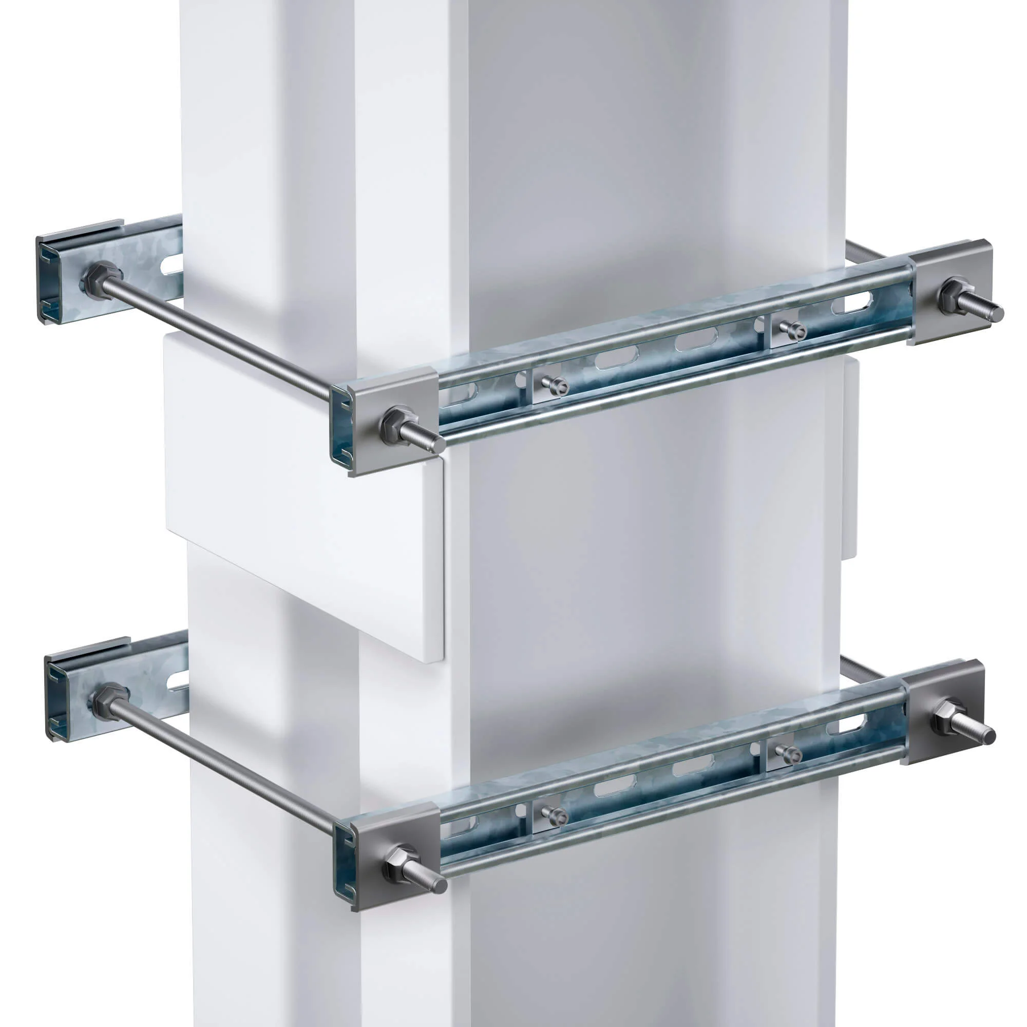 Обжимной комплект монтажных профилей типа 2 применяется для крепления оболочек. Решение выполняет обхват конструкции с габаритами 350 на 440 мм, высота подвесной рамы-профиля 800 мм. В комплект входят метизы для крепления 2 оболочек одного типоразмера din 84 M6X40.