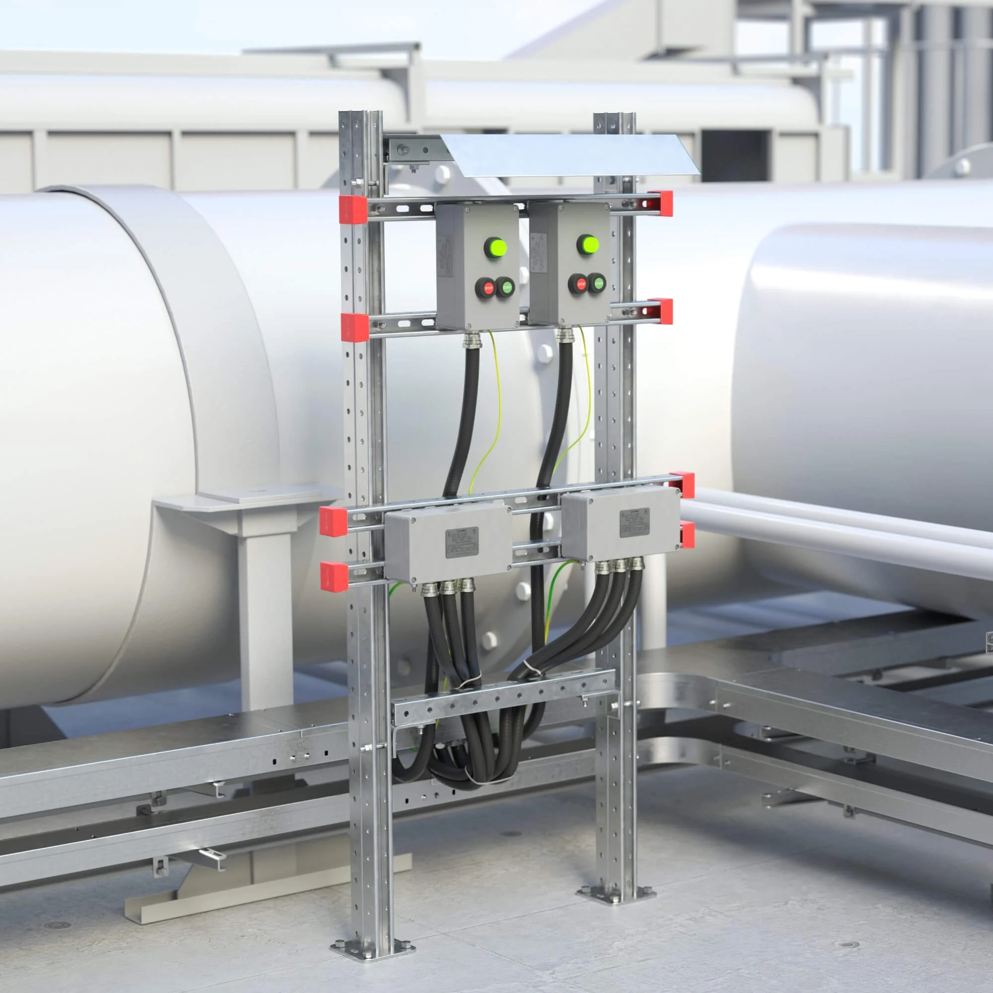 Обжимной комплект монтажных профилей типа 2 применяется для крепления оболочек. Решение выполняет обхват конструкции с габаритами 350 на 440 мм, высота подвесной рамы-профиля 1000 мм. В комплект входят метизы для крепления 3 оболочек одного типоразмера din 84 M6X40.