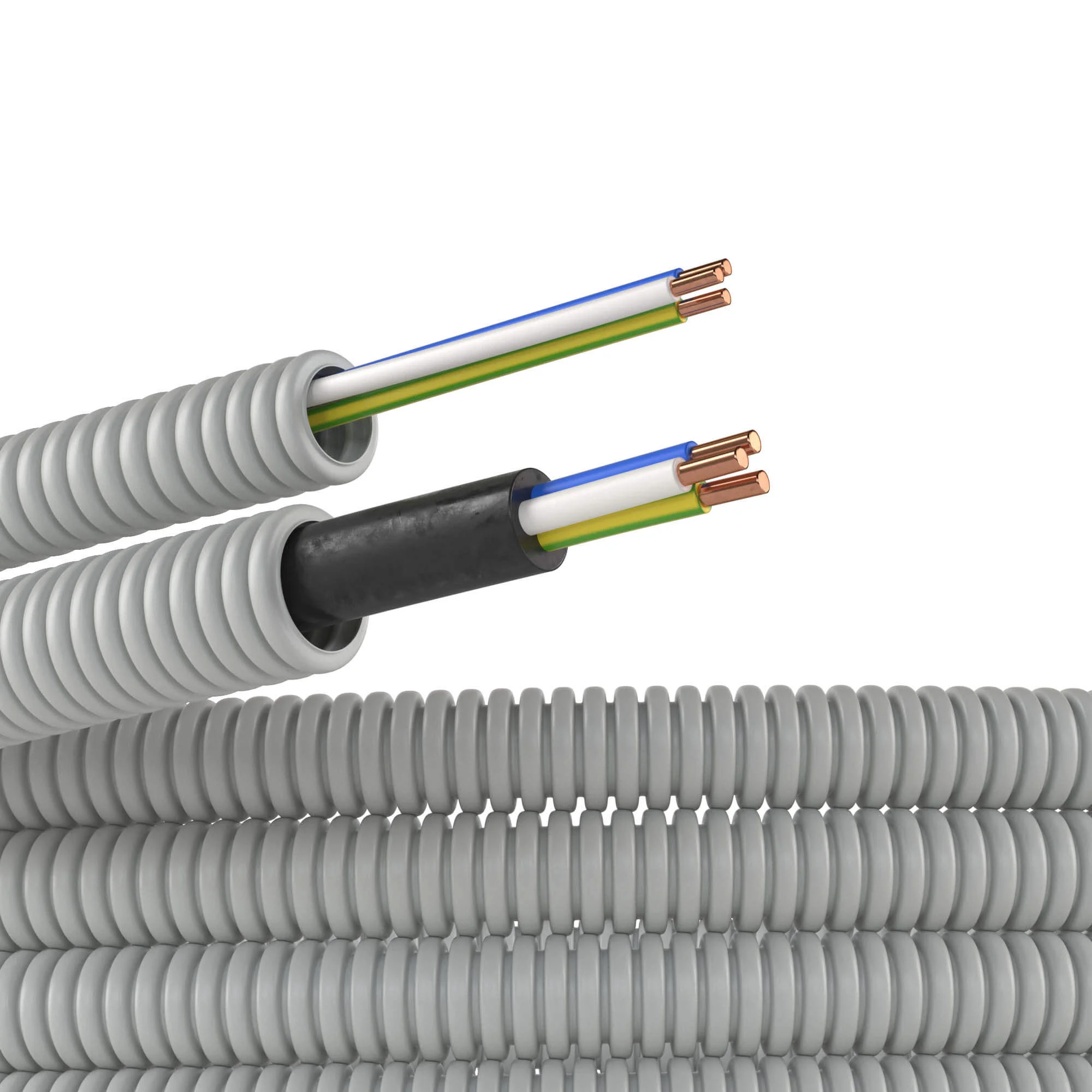 DKC Электротруба ПВХ гибкая гофр. д.16мм, цвет серый, с проводом ПуВ 3х2,5мм² РЭК «ГОСТ+», 50м