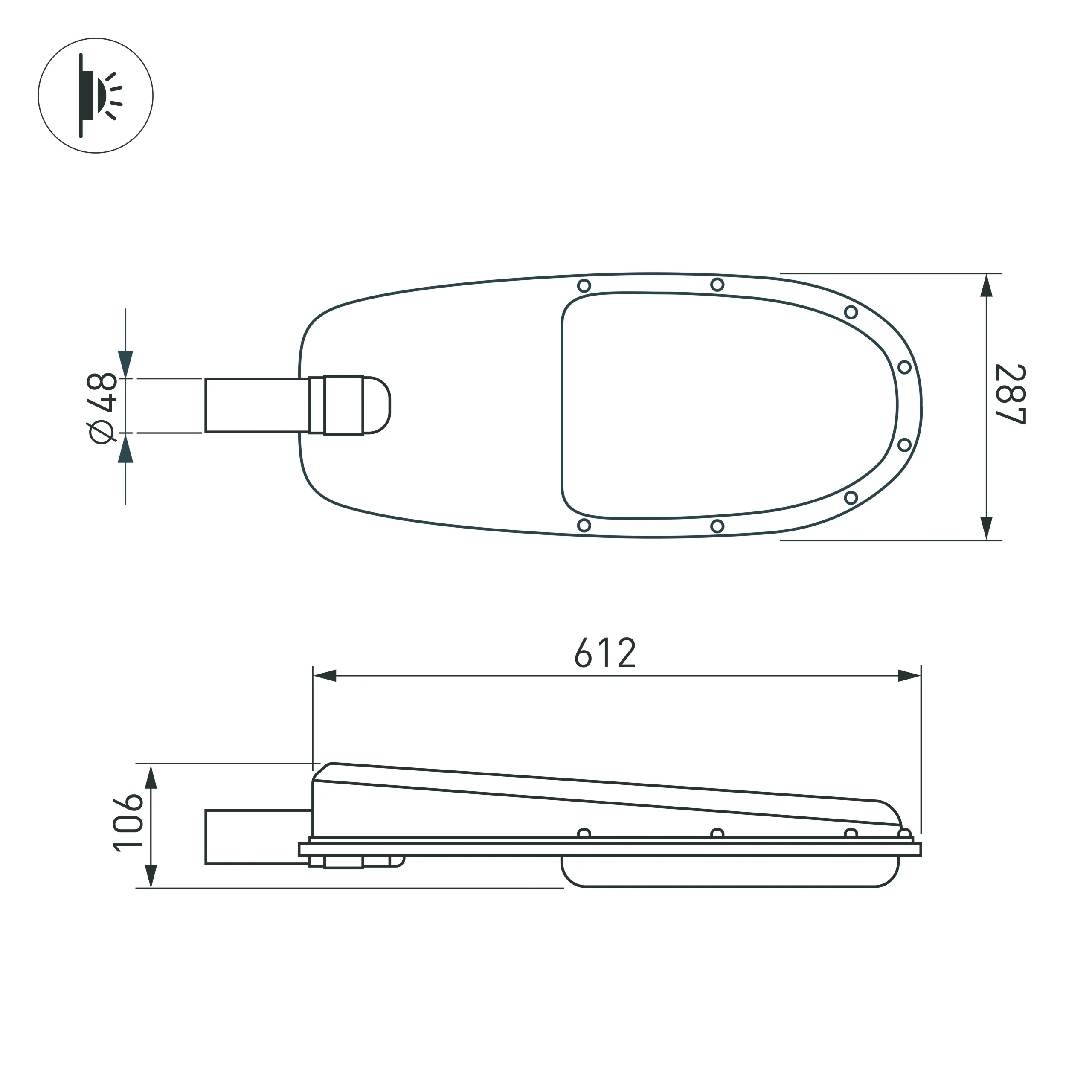 Светильник уличный консольный, цвет Day4000K, CRI>70, световой поток — 7200 лм. Габаритные размеры 572х221х131мм. Тип КСС «Ш», угол рассеивания 150°х80°. Степень защиты IP66. Мощность 45 Вт, питание 230 В. Материал корпуса — литой алюминий, рассеиватель — темперированное стекло. Гарантия 3 года.