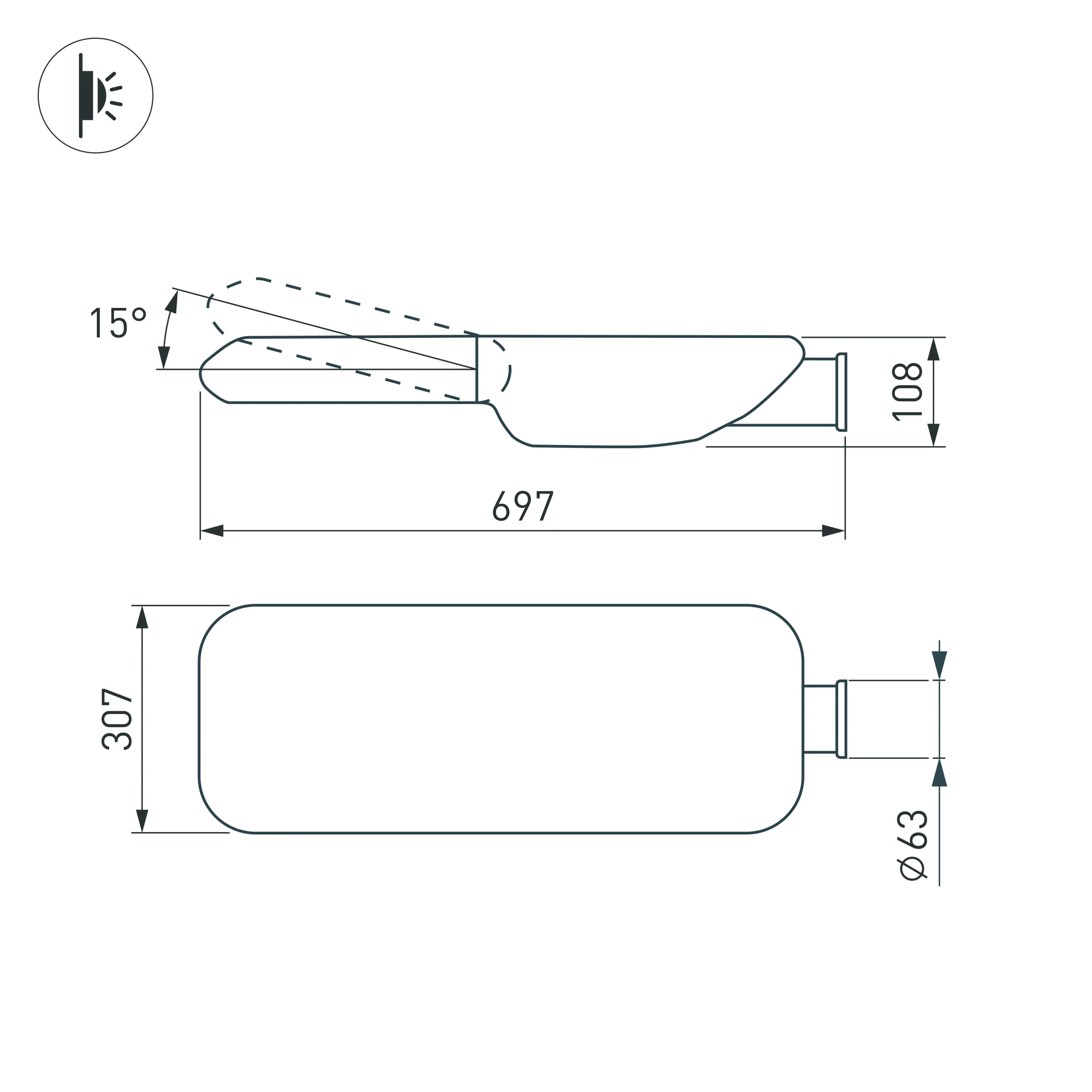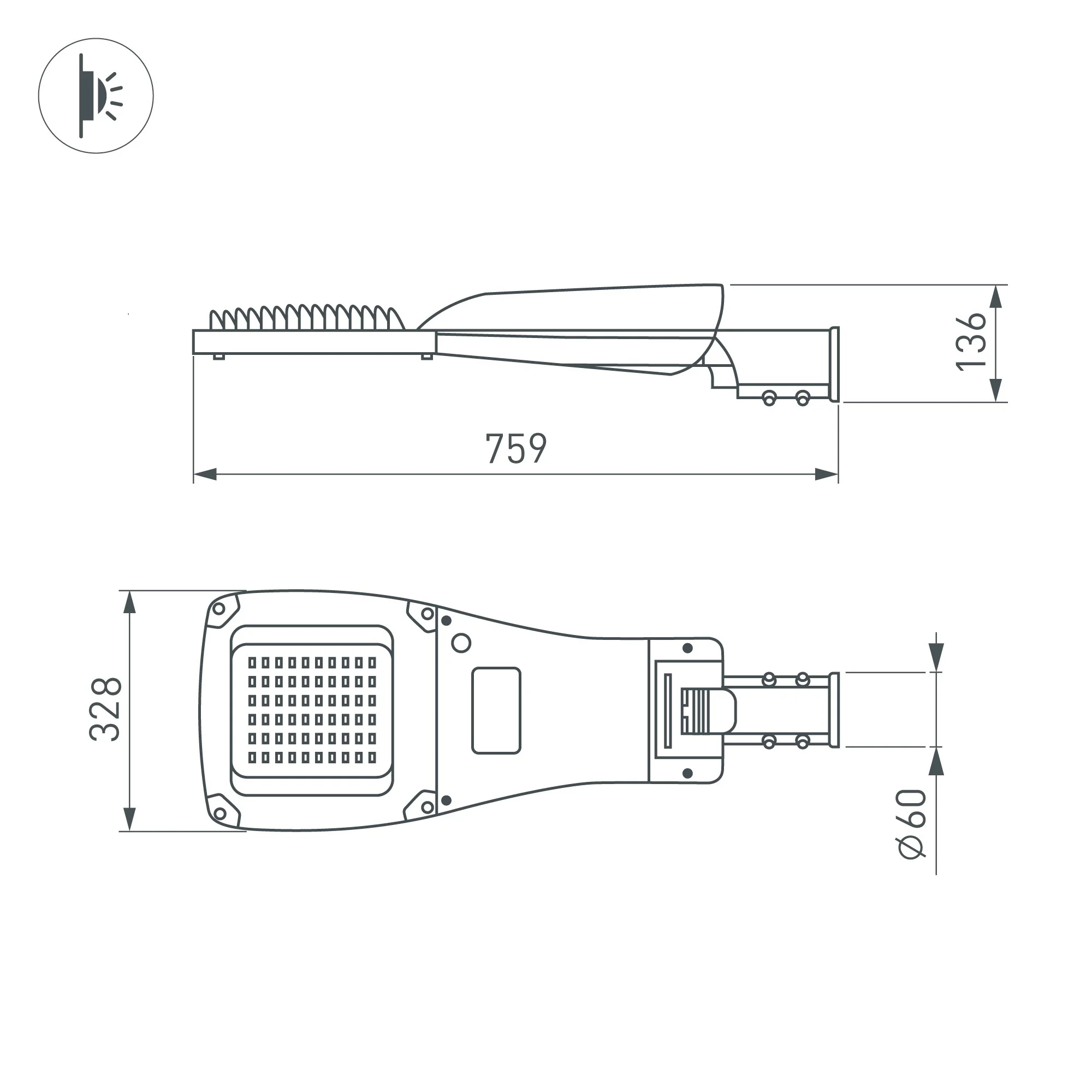Светильник уличный консольный, цвет Day5000K, CRI>70, световой поток — 9000 лм. Габаритные размеры 696х308х108 мм. Тип КСС «Ш», угол рассеивания 144°х80°. Степень защиты IP66. Мощность 60 Вт, питание 230 В. Материал корпуса — литой алюминий, рассеиватель — темперированное стекло. Гарантия 3 года.