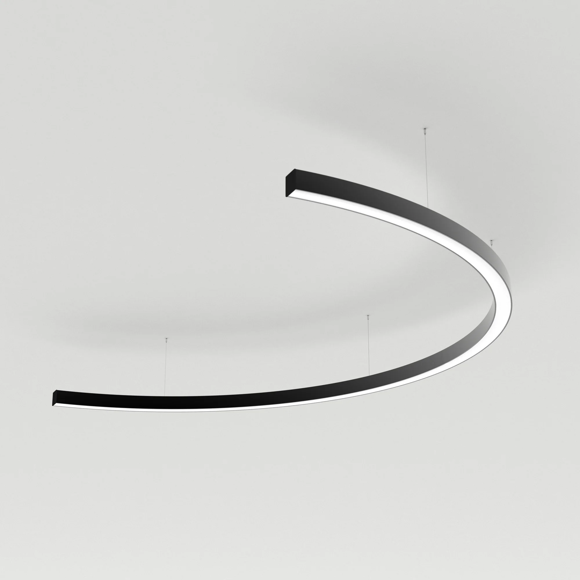 Светильник S-образный из профиля SL-ARC-3535-D800-A90 BLACK, свечение вниз, цвет Тёплый 3000 K.