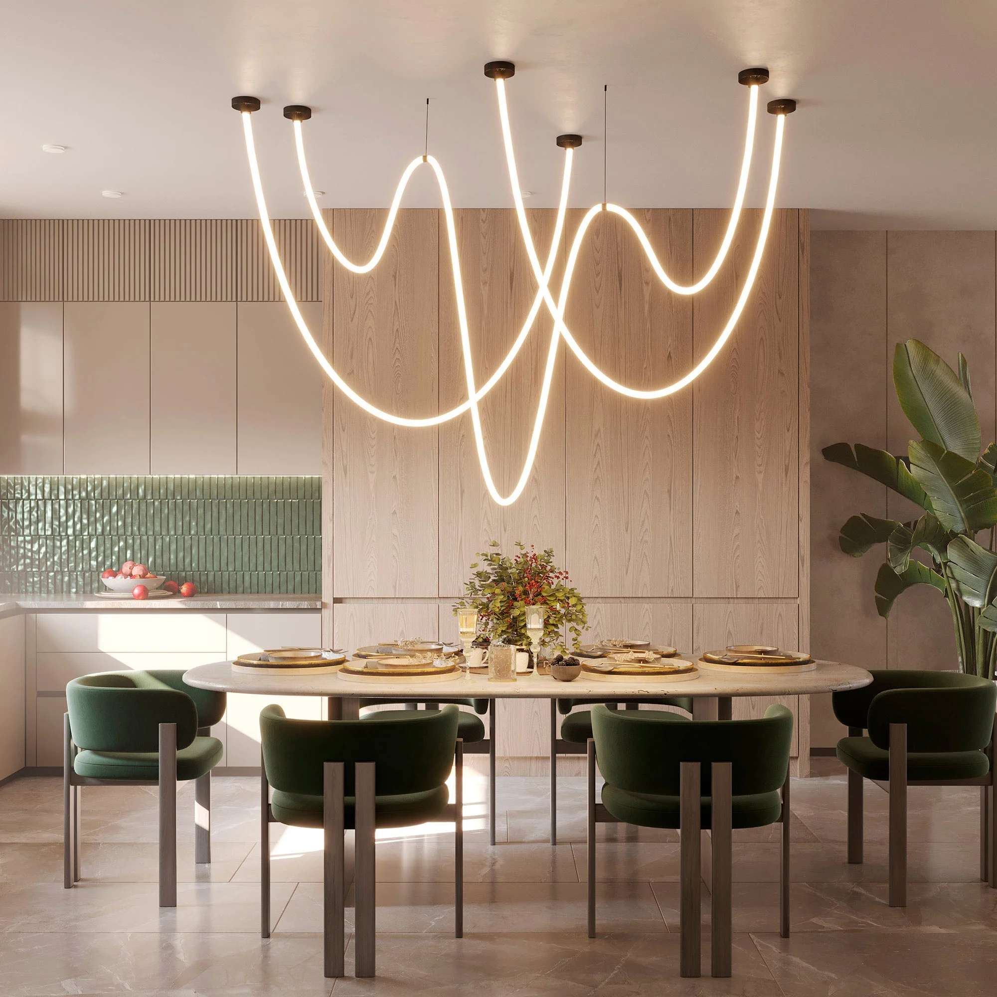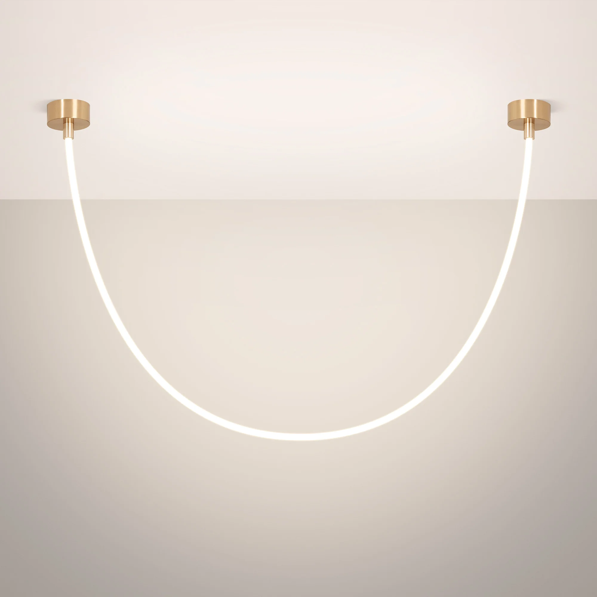 Декоративный подвесной светильник. Мощность 10 Вт, св. поток 410 лм, 40 лм/Вт, дневной 4000 K, CRI>90, угол 120°, напряжение питания 230 В. Золотой корпус из алюминия и металла, экран из силикона, степень защиты IP20. Размер: длина 590 мм, диаметр 16 мм, габариты чаши: длина 124 мм, диаметр 70 мм , длина троса 1500 мм. Монтаж […]