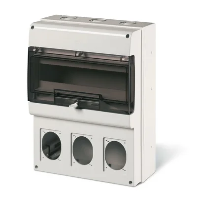 Навесной корпус из ABS-пластика шириной 290 мм, высотой 195 мм, глубиной 102.9 мм, имеющий 12 модуля (модулей).