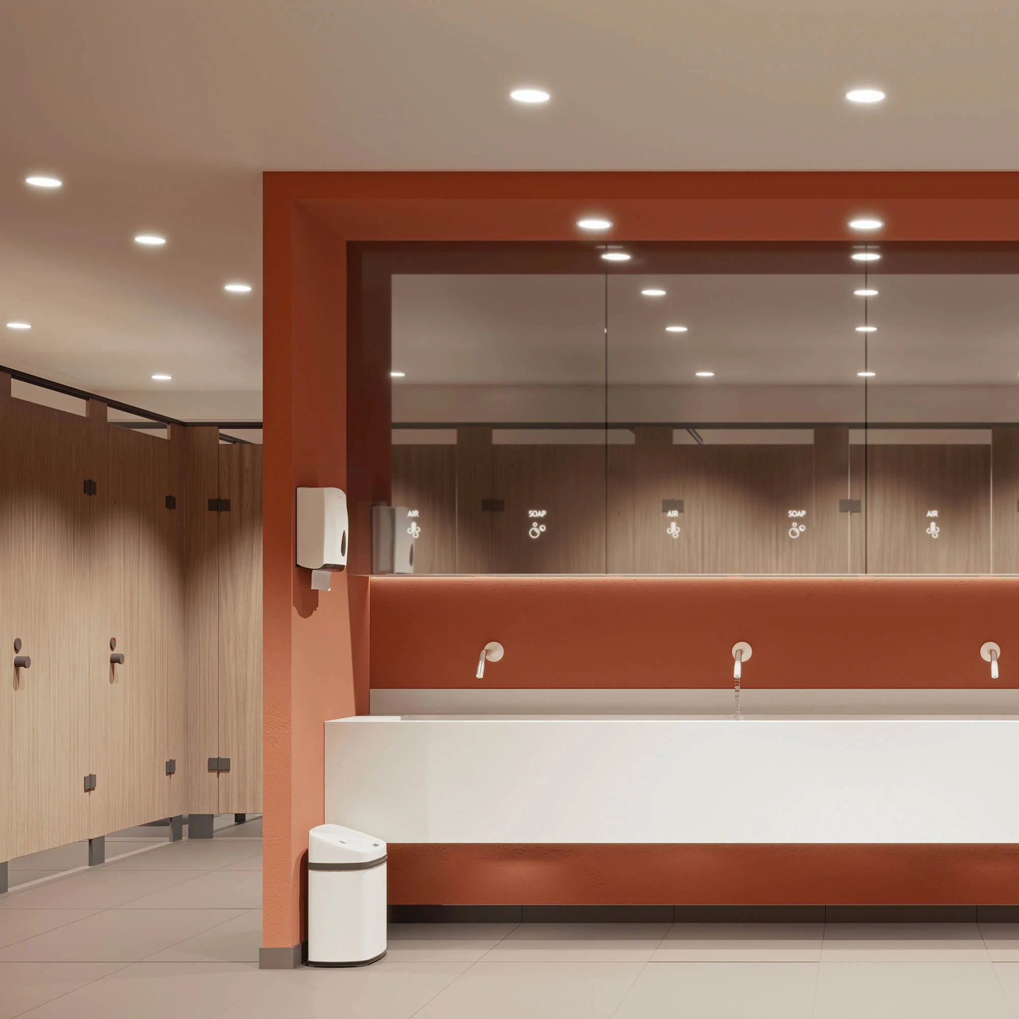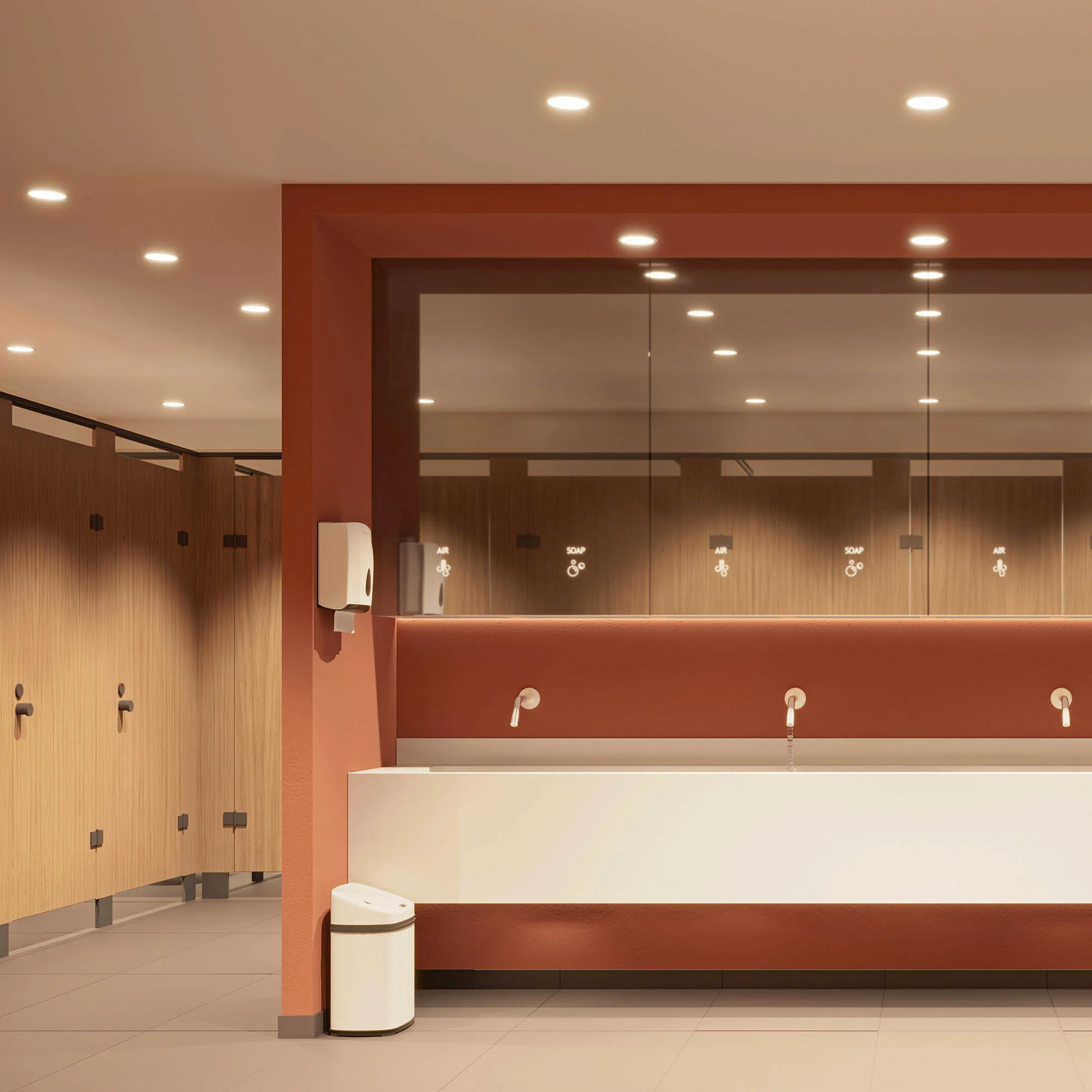 Встраиваемый светильник даунлайт с изменяемой мощностью и цветовой температурой. Мощность 6-9 Вт, св. поток 620-890 лм, 100 лм/Вт, цветовая температура 3000-4000-5700 K, CRI>90, угол 40°, напряжение питания 230 В. Белый круглый корпус, степень защиты IP54. Размер: диаметр 106 мм, высота 67 мм. Монтаж встраиваемый, установочное отверстие: диаметр 90-98 мм. TRIAC-драйвер, пульсация <1%.