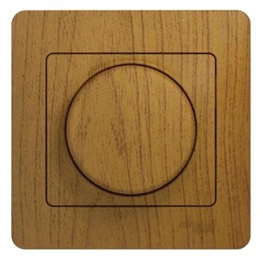 Светорегулятор Systeme Electric (ранее Schneider Electric) серии Glossa (в сборе, цвет дерево дуб) поворотный для нагрузки мощностью до 300 Вт. — Светорегулятор позволяет установить в помещении комфортный уровень освещения. — Выполнен из материала PС+ASA, стойкого к УФ-излучению и появлению царапин.