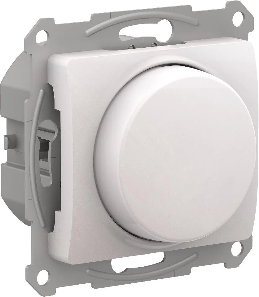 Механизм светорегулятора Systeme Electric (ранее Schneider Electric) серии AtlasDesign (цвет жемчуг) поворотно-нажимной для нагрузки мощностью до 400 Вт, подходит для LED ламп. — Светорегулятор позволяет установить в помещении комфортный уровень освещения. — При подключении второго переключателя диммер может использоваться как проходной переключатель. — Может использоваться как выключатель или переключатель. — Выполнен из материала, стойкого к […]