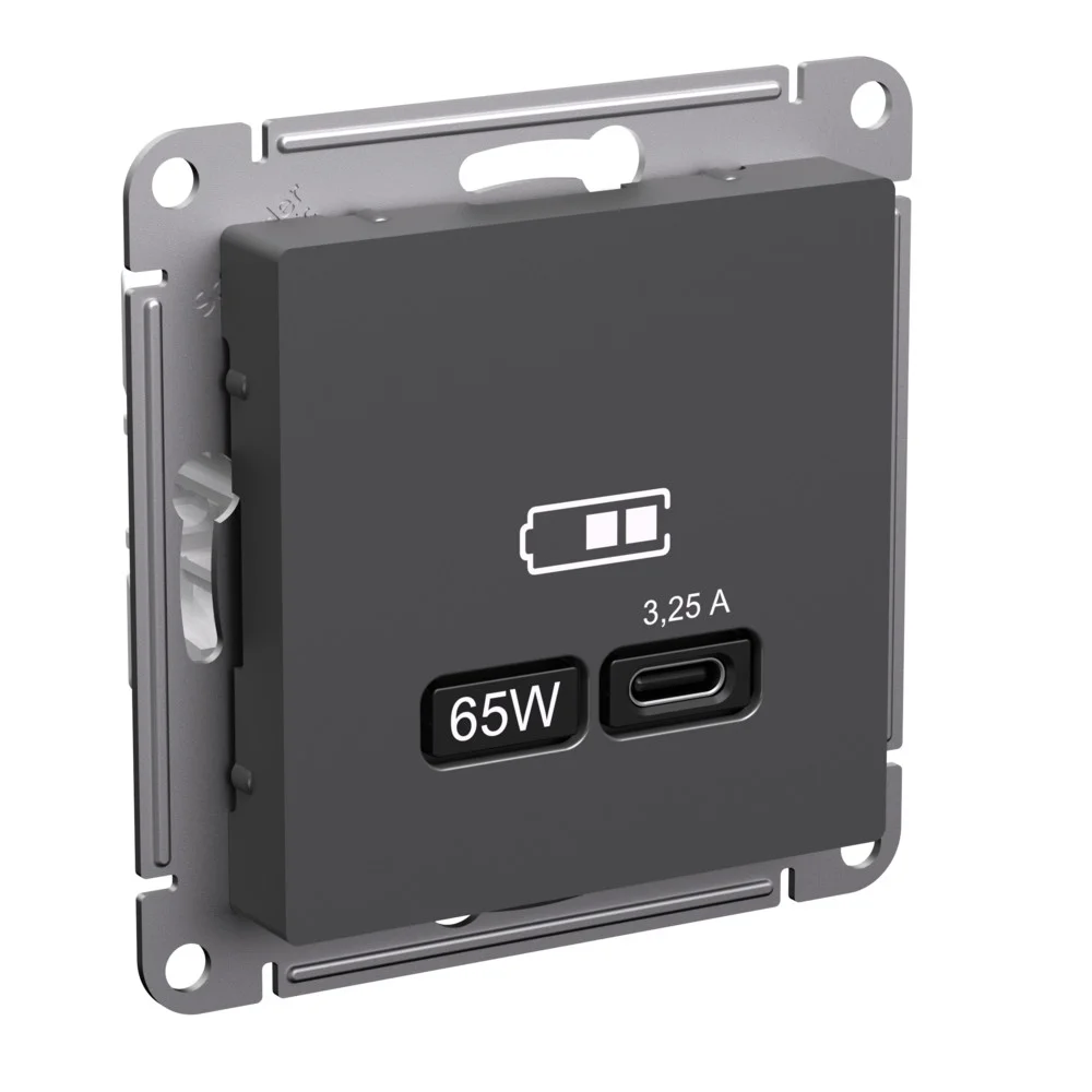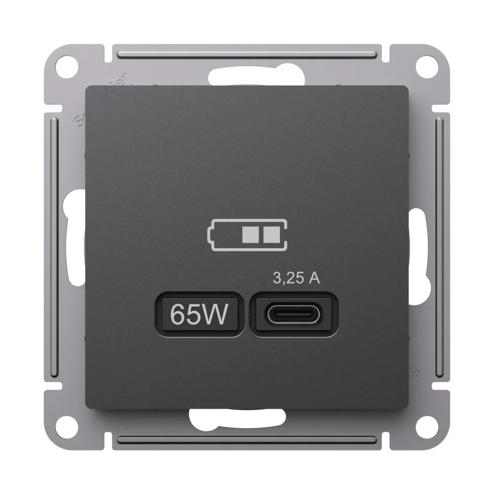 Systeme Electric AtlasDesign Базальт Розетка USB тип-С 65Вт высокоскор.заряд. QC, PD, механизм
