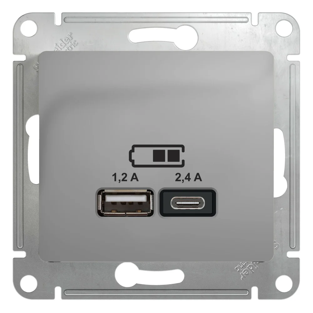 Systeme Electric Glossa Алюминий Розетка USB A+С, 5В/2,4А, 2х5В/1,2А