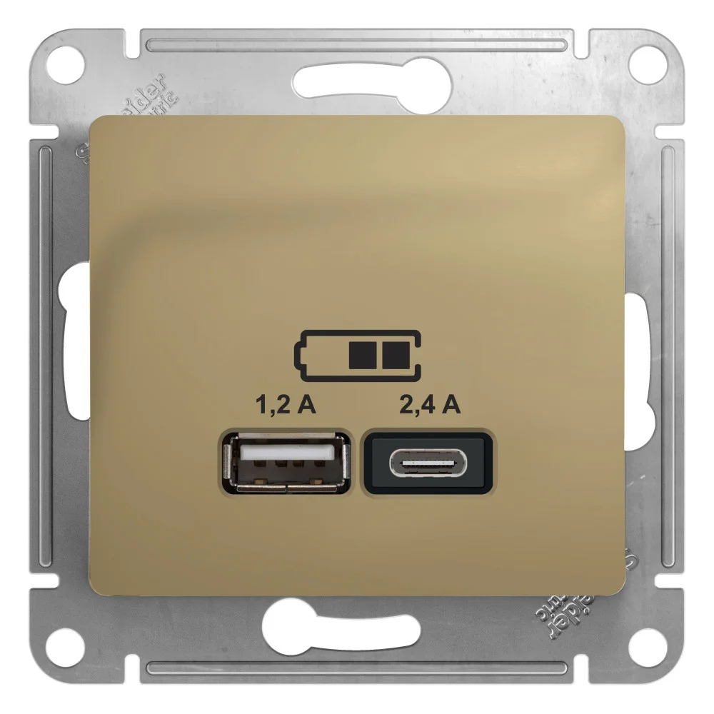 Systeme Electric Glossa Беж USB Розетка A + тип-C 45W высокоскор.заряд. QC, PD, мех.