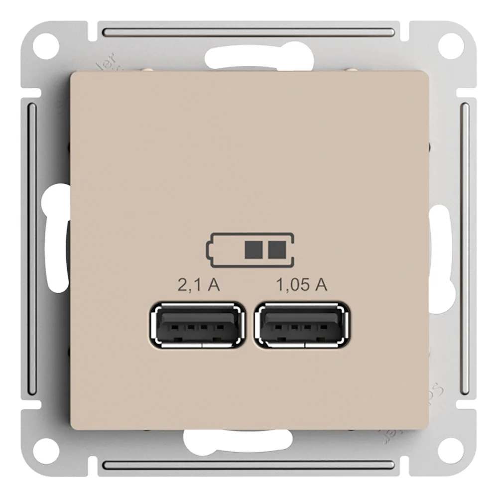 Механизм Systeme Electric (ранее Schneider Electric) серии AtlasDesign в цвете песочный розетки для зарядки с двумя разъёмами USB с выходными напряжением 5 В постоянного тока и выходами с номинальным током по 2,1 А. USB розетка позволяет напрямую заряжать одно или два мобильных устройства. Лицевые детали из качественного ABS-пластика, устойчивого к царапинам и УФ-излучению. Усиленные прямые […]
