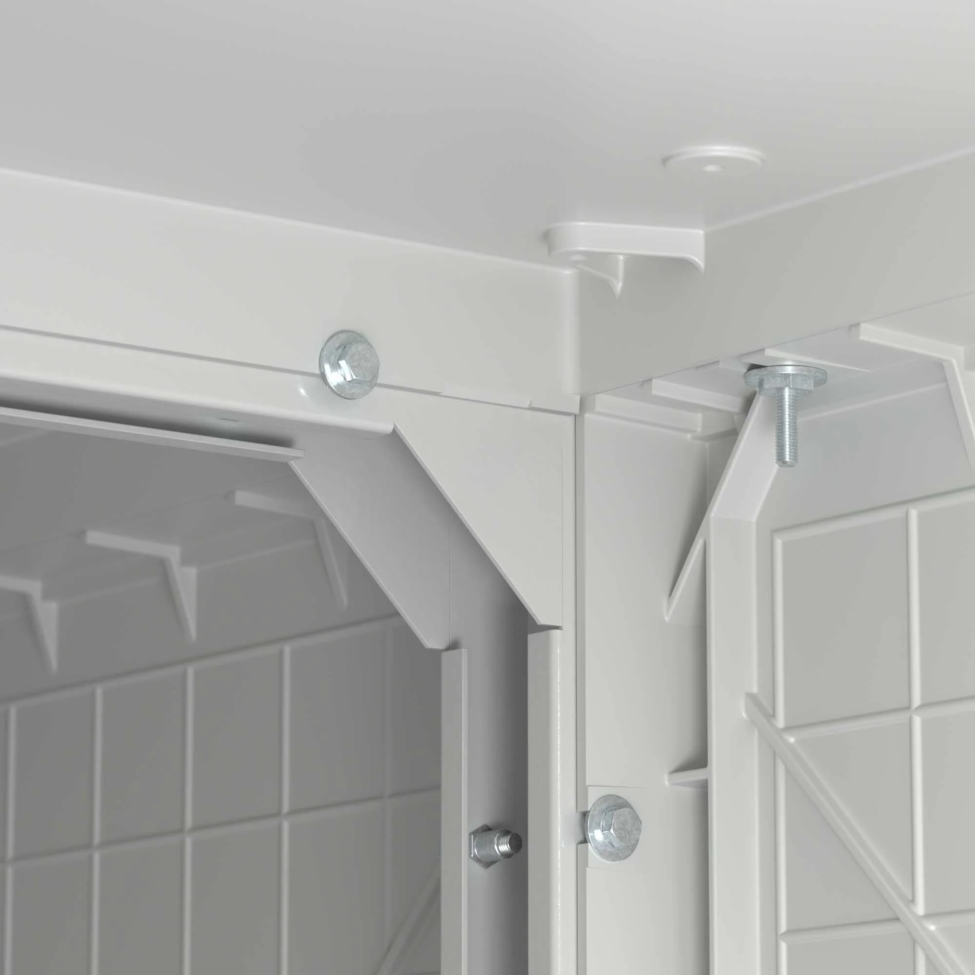 Комплект предназначен для соединения напольных шкафов CQE N «спина к спине». Обеспечивает объединение каркасов только по глубине. Степень пыле- и влагозащиты IP55. Подходит для шкафов шириной 300 и высотой 1800 мм. При необходимости можно дополнительно установить внешние декоративные накладки типа R5NFSC высотой 1800 мм.