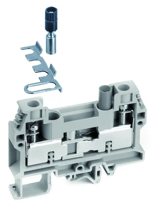 Перемычка сдвижная (слева) винтовая, двухполюсная для быстрого и надежного перемыкания измерительных винтовых клемм TUR-6-RTK-S.