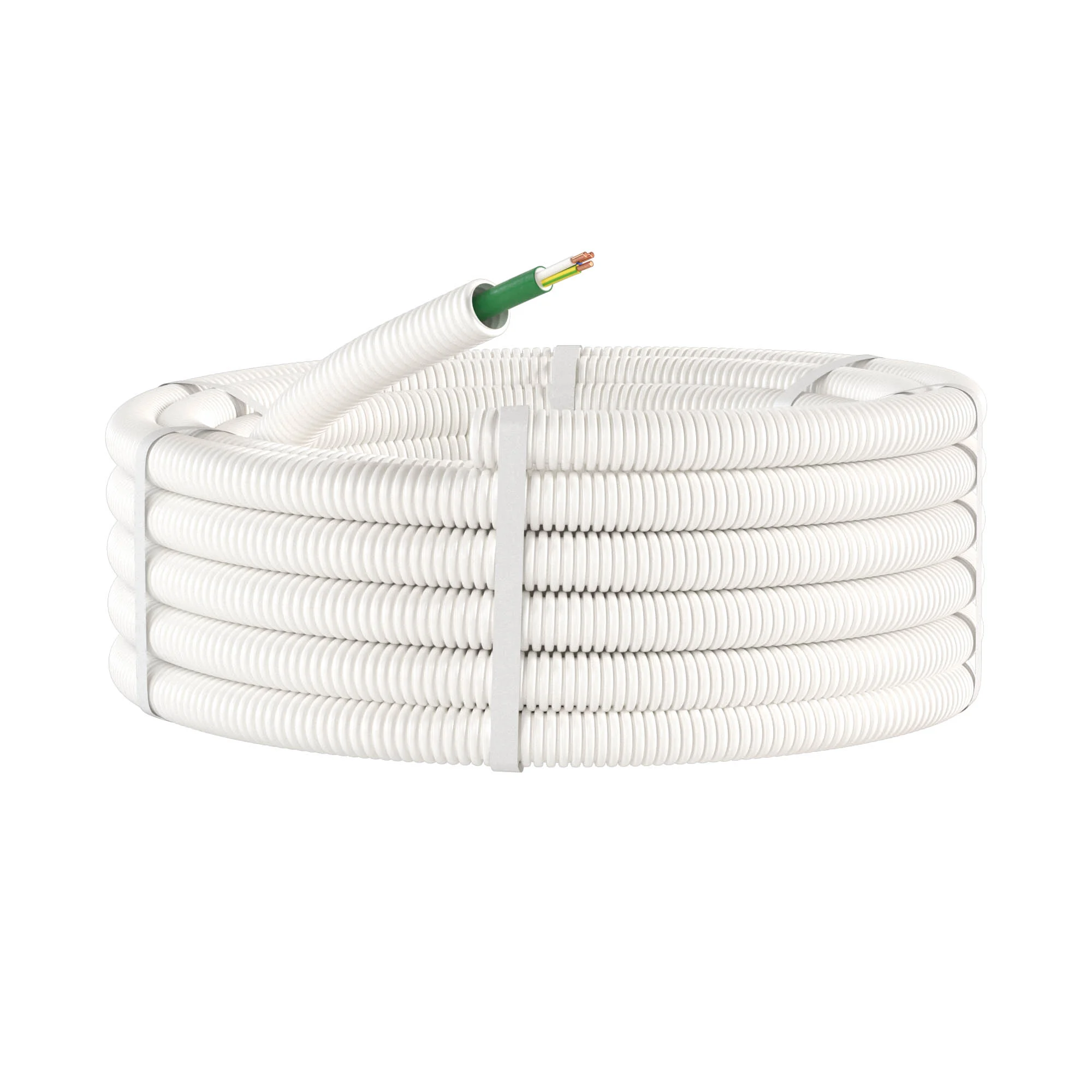 Электротруба — это продукт, который экономит время при прокладке электрических сетей и сокращает количество усилий, затраченных на монтаж. Внутри электротрубы уже протянута электропроводка. Электротрубы ДКС выпускаются с различными вариантами кабеля. Материал — полиэтилен низкого давления. Диаметр — 20 мм. Цвет — серый. Кабель — ВВГнг(А)-LS3х2,5мм² РЭК «ГОСТ+».