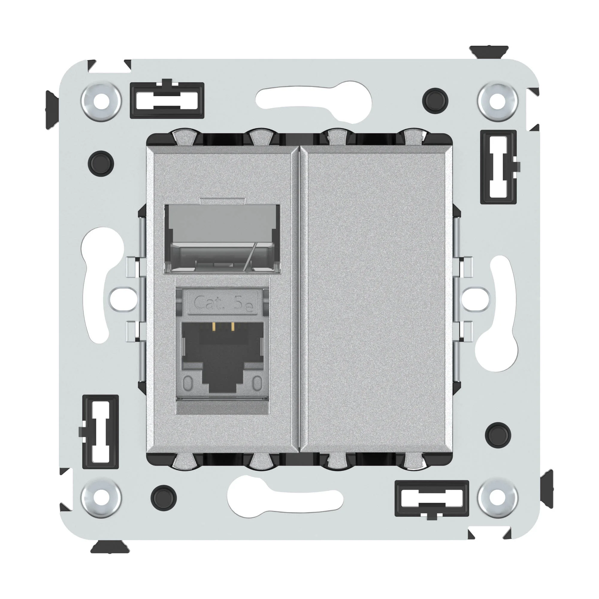 Systeme Electric Blanca внутр Алюминий Розетка 2-ая комп/ТЛФ, RJ45+RJ11