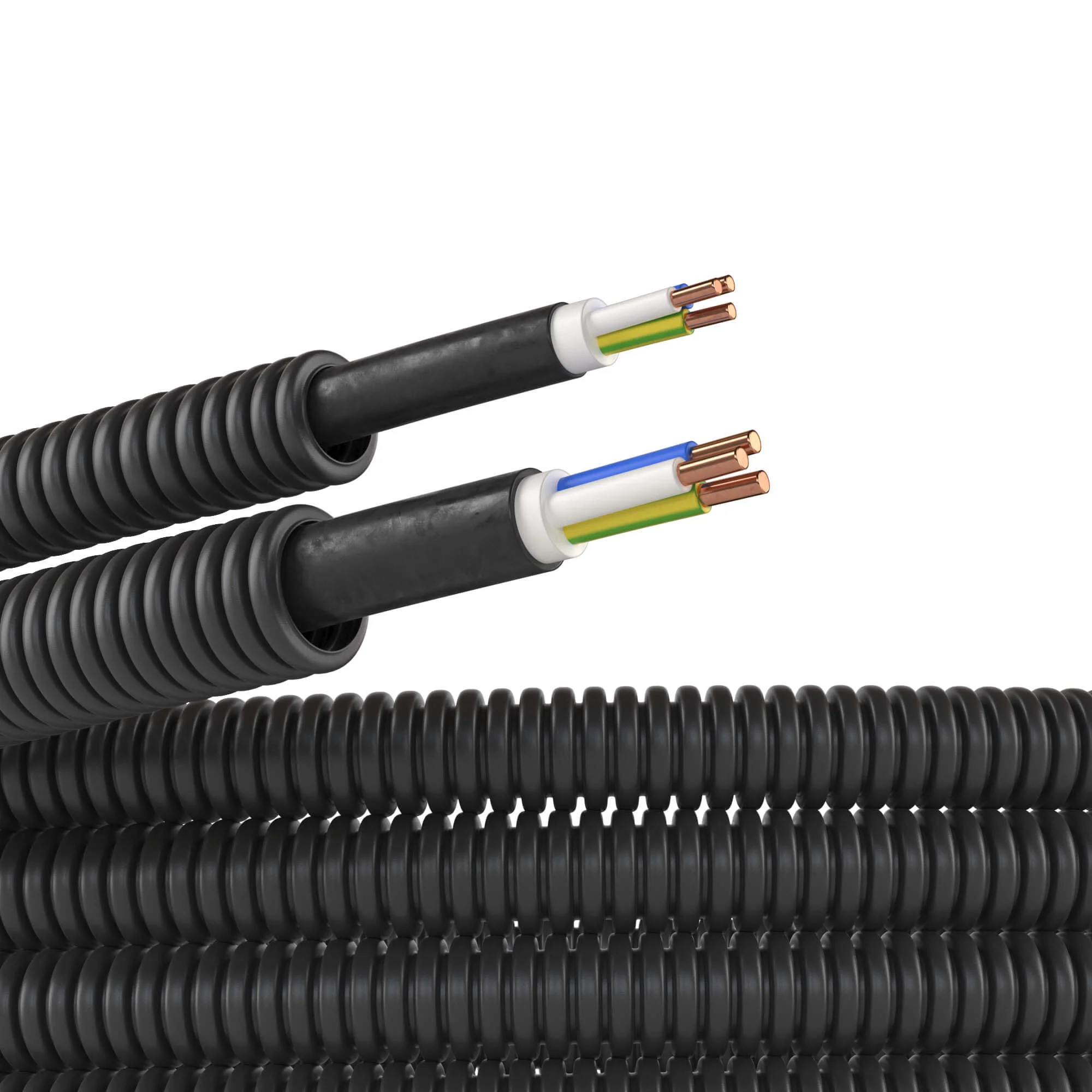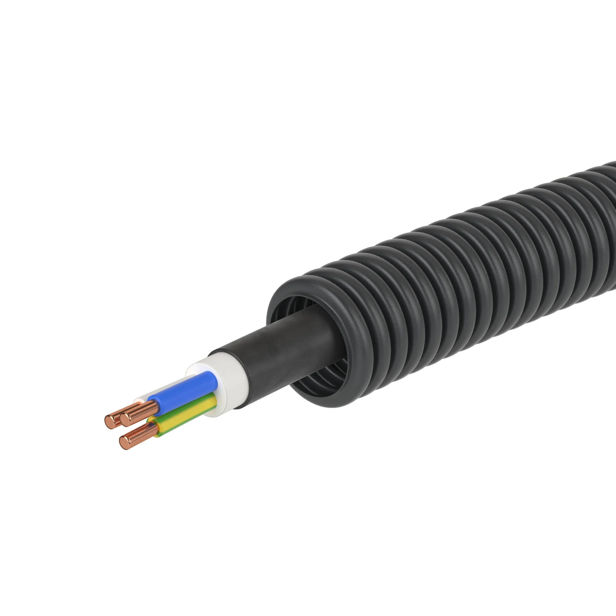 Электротруба — это труба с уже протянутой электропроводкой. Электротрубы ДКС выпускаются с различными вариантами кабеля. Материал — полиэтилен низкого давления. Диаметр — 16 мм. Цвет — черный. Кабель — ВВГнг(А)-LS 3х1,5мм² РЭК «ГОСТ+».