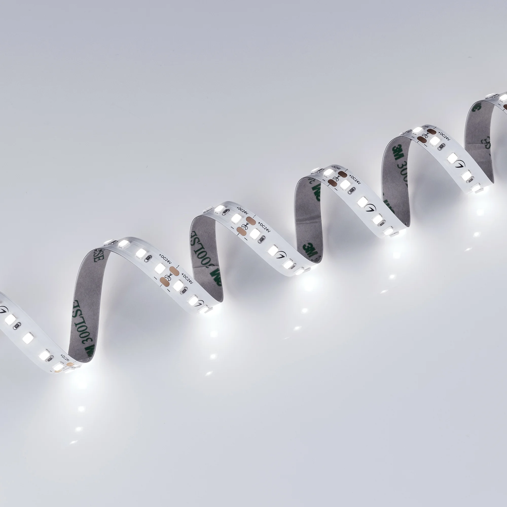 Светодиодная лента UL серии A140. Светодиоды SMD 2835, 140 шт/м, белая плата шириной 8 мм, скотч 3M. Цвет БЕЛЫЙ 6000K, индекс цветопередачи CRI>90, угол 120°. Питание 24 В, мощность 10 Вт/м (50 Вт на 5 м). Размеры 5000x8x1.2 мм. Мин. отрезок 50 мм, 7 светодиодов. Цена за 1 м. Кратность заказа поставщику: 5 м.