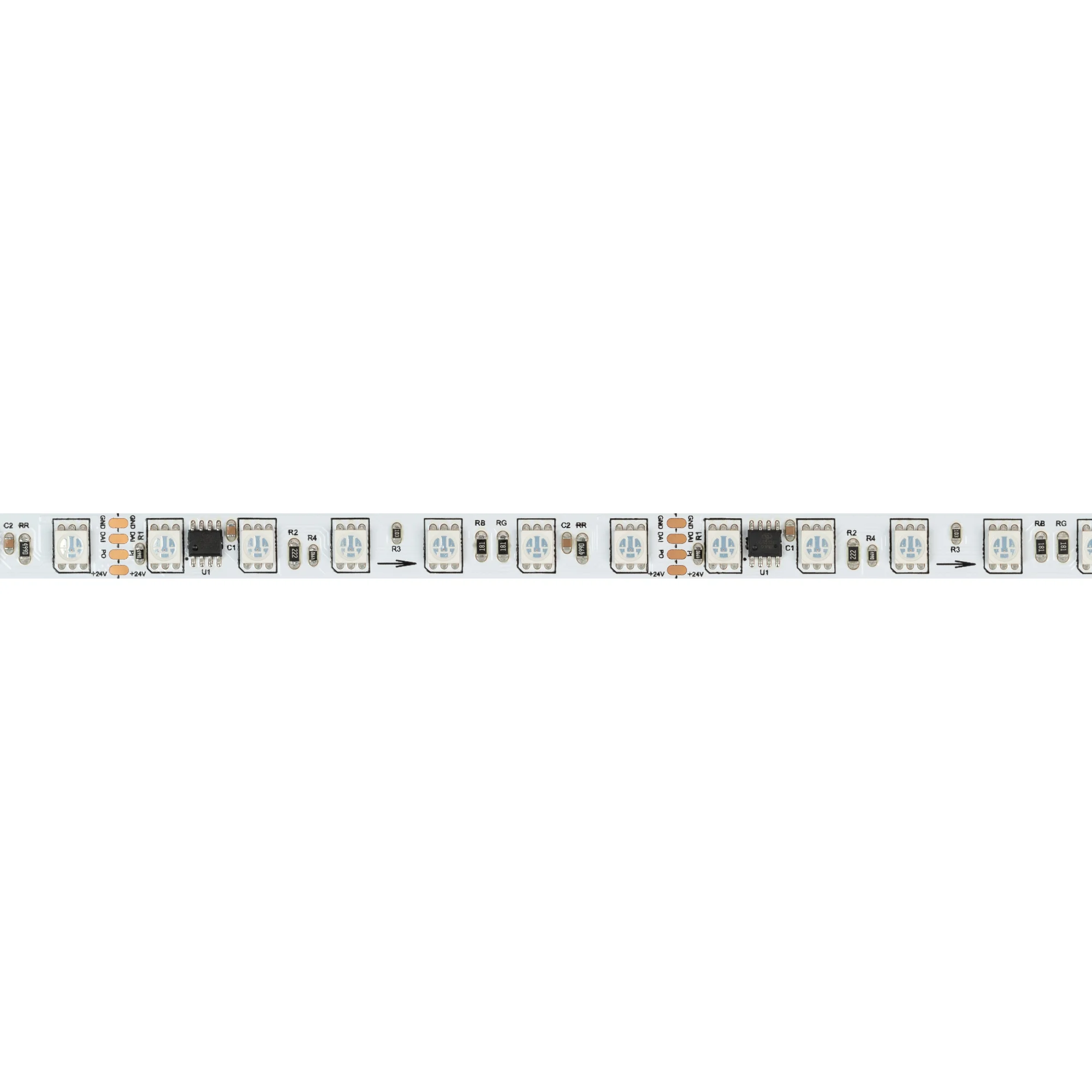 Светодиодная лента DMX серии B72 с микросхемой UCS512. Светодиоды SMD 5060, 72шт/м, 12 pixels на 1 м (60 pixels на 5 м), 1 pixel = 6 светодиодов, белая плата шириной 10 мм, скотч 3М. Цвет RGB, угол 120°. Питание 24 В, мощность 16 Вт/м (80 Вт на 5 м). Размеры 5000x10x2 мм. Мин.отрезок 83.33 мм, […]