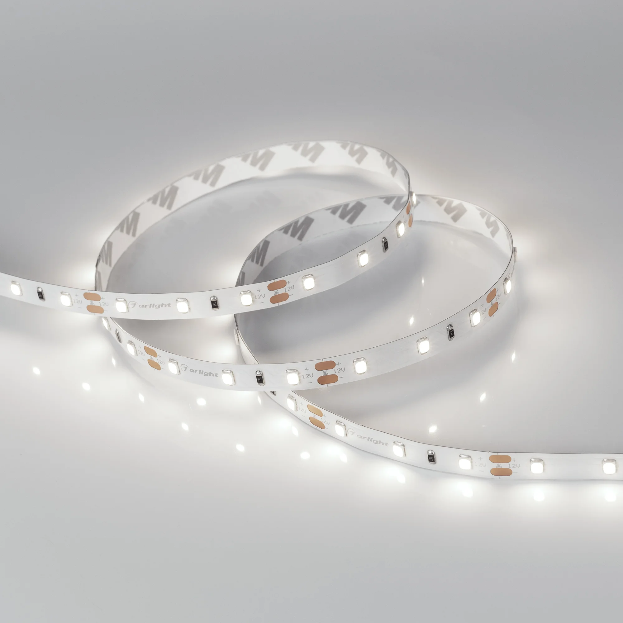 Светодиодная лента RT серии A60. Светодиоды SMD 2835, 60 шт/м, белая плата шириной 8 мм, скотч 3M. Цвет БЕЛЫЙ 6000K, индекс цветопередачи CRI>85, угол 120°. Питание 12 В, мощность 4.8 Вт/м (24 Вт на 5 м). Размеры 5000x8x1.5 мм. Мин. отрезок 50 мм, 3 светодиода. Цена за 1 м. Кратность заказа поставщику: 5 м.