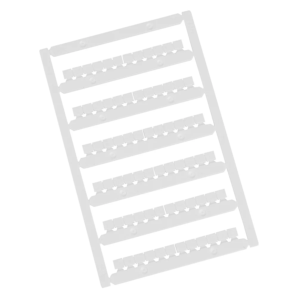 Маркировка кле мм «Nuputuk» изготавливается из композиционного материала АБС-ПК. Класс горючести по UL94 – V0. Температура эксплуатации: от −40 до +80 °С. Цвет – белый. Фиксируется на клеммах защелкиванием. Символы от 51 до 60, горизонтальная ориентация. Тег размером 5х10 мм. На пластине 90 тегов. В упаковке 5 пластин – 450 тегов.
