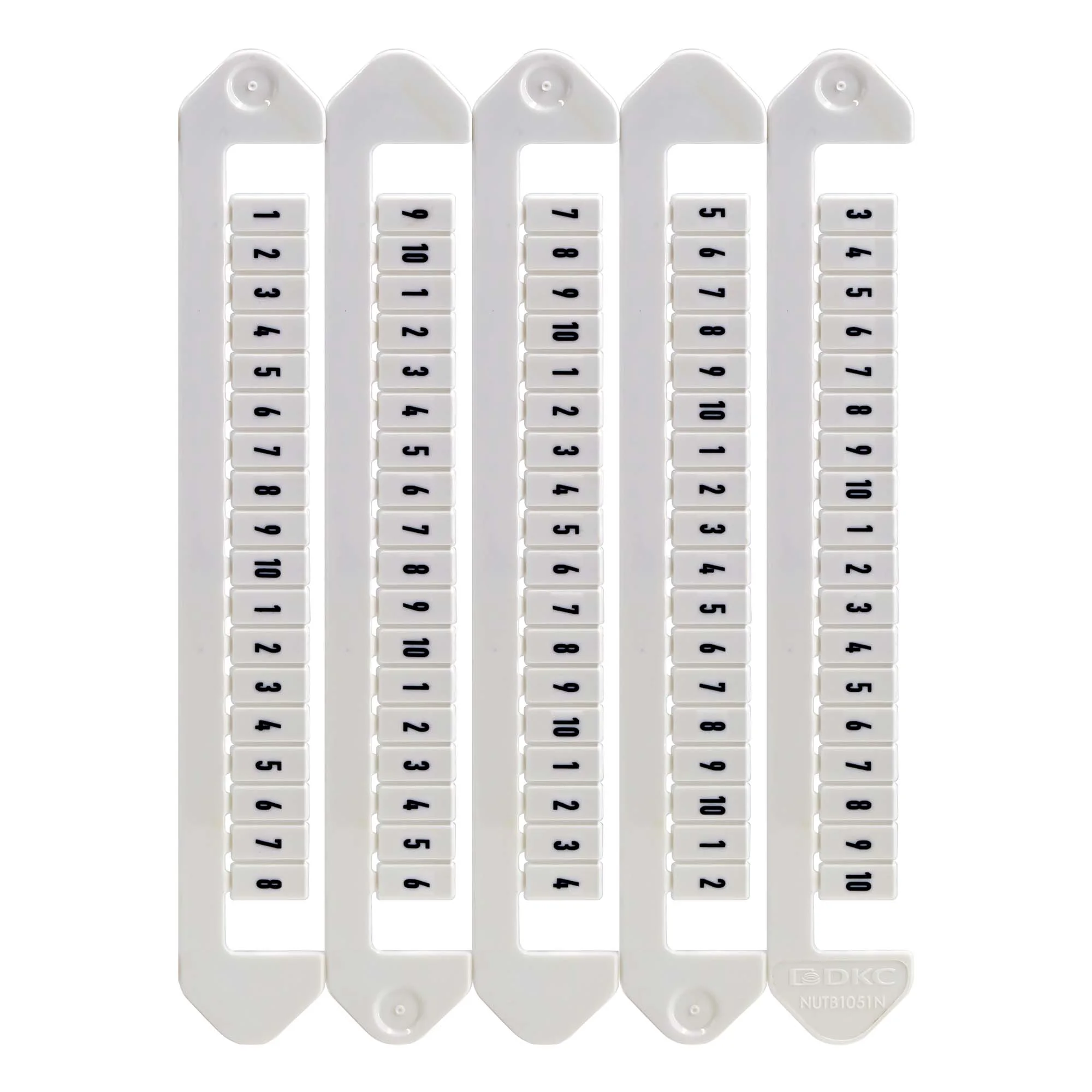 Маркировка кле мм «Nuputuk» изготавливается из композиционного материала АБС-ПК. Класс горючести по UL94 – V0. Температура эксплуатации: от −40 до +80 °С. Цвет – белый. Фиксируется на клеммах защелкиванием. Символы от 1 до 10, горизонтальная ориентация. Тег размером 5х10 мм. На пластине 90 тегов. В упаковке 5 пластин – 450 тегов.