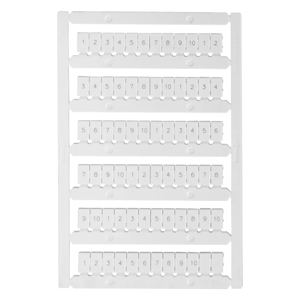 Узкая маркировка для боковой маркировки клемм Push-in (кроме многоуровневых). Ширина 6 мм, белая с черной печатью от 1 до 10, горизонтальная ориентация, 1 шт. — карта из 80 маркеров.