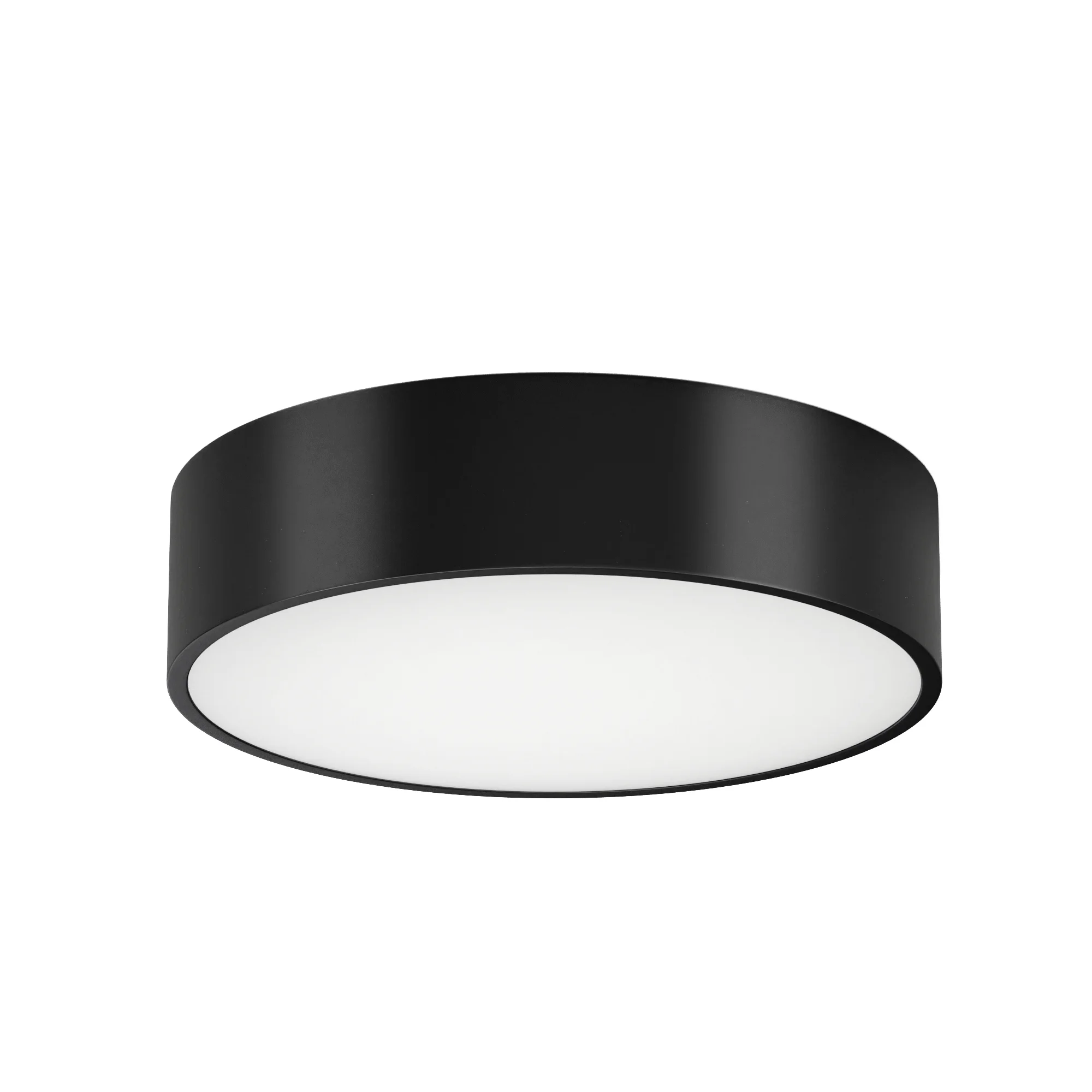 Накладной интерьерный светильник. Мощность 25 Вт, св. поток 2025 лм, 80 лм/Вт, теплый 3000 K, CRI>80, угол 100°, напряжение питания 230 В. Черный круглый корпус из алюминия, степень защиты IP20. Призматический акриловый рассеиватель. Размер: диаметр 400 мм, высота 100 мм. Монтаж накладной. Драйвер 30-42 В, 750 мА, пульсация <2%.