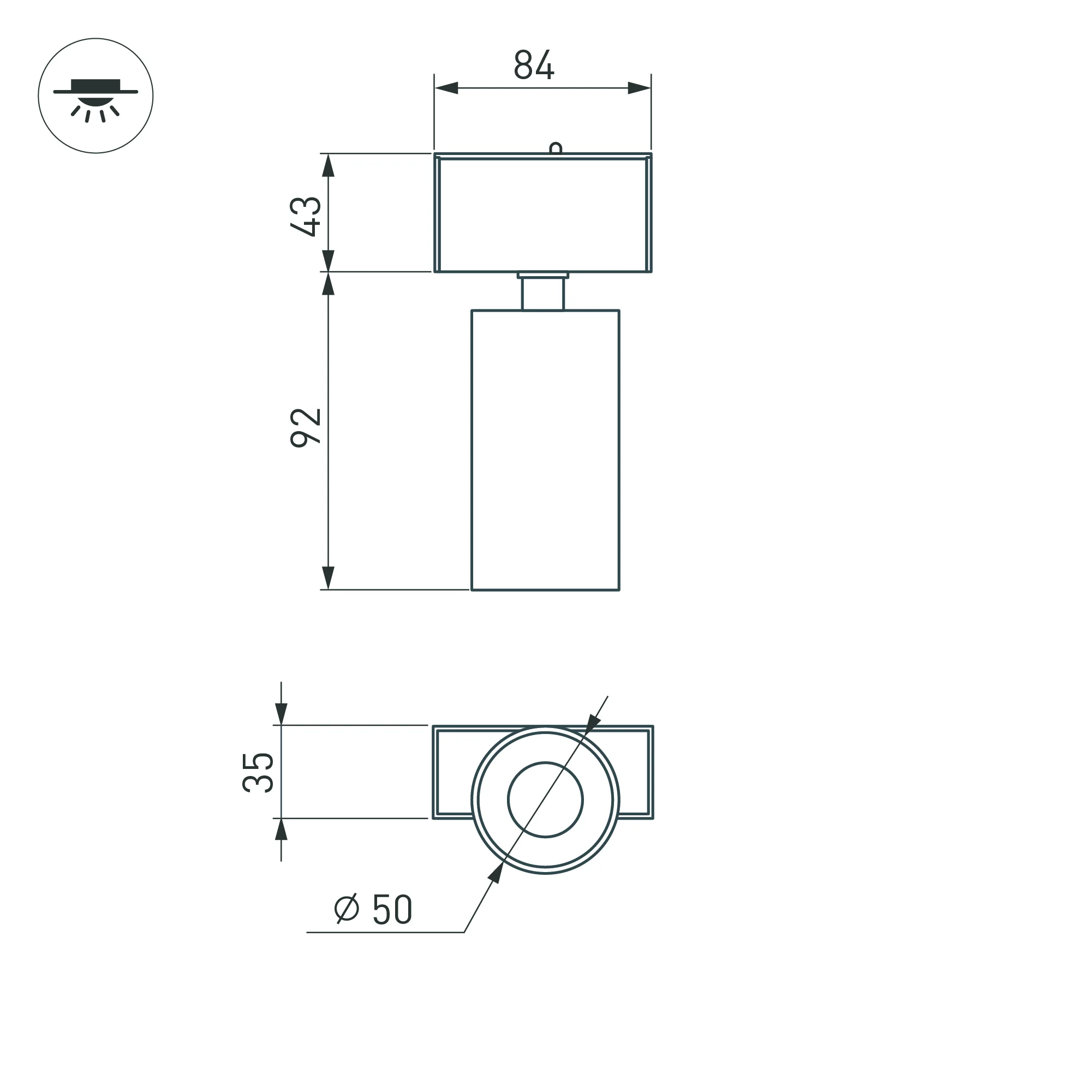 Накладной светильник. Мощность 9 Вт, св. поток 560 лм, 62 лм/Вт, теплый 3000 K, CRI>90, угол 36°, напряжение питания 230 В. Чёрный круглый корпус из алюминия, экран PMMA, степень защиты IP40. Размер: диаметр 50 мм, высота 110 мм. Монтаж накладной. Встроенный драйвер 27-40 В, 200 мА, пульсация <1 %.