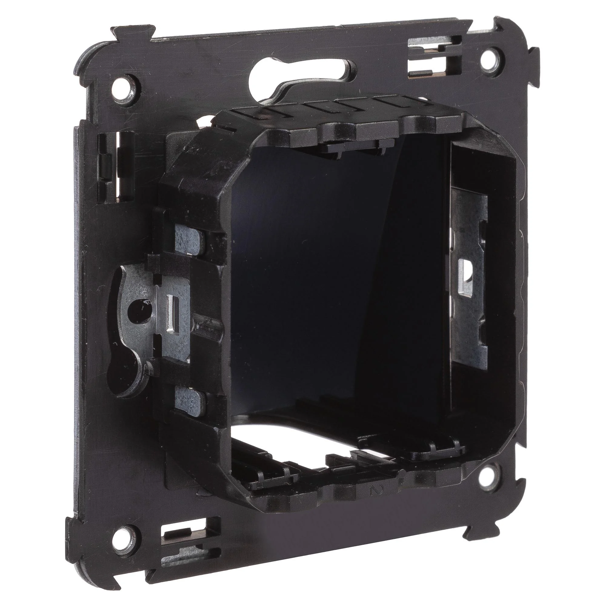 Вывод кабеля из стены. Назначение: для монтажа в подрозеточные коробки (код 59301); для вывода и фиксации кабеля. Кол-во модулей: 2. Цвет: «Черный квадрат»