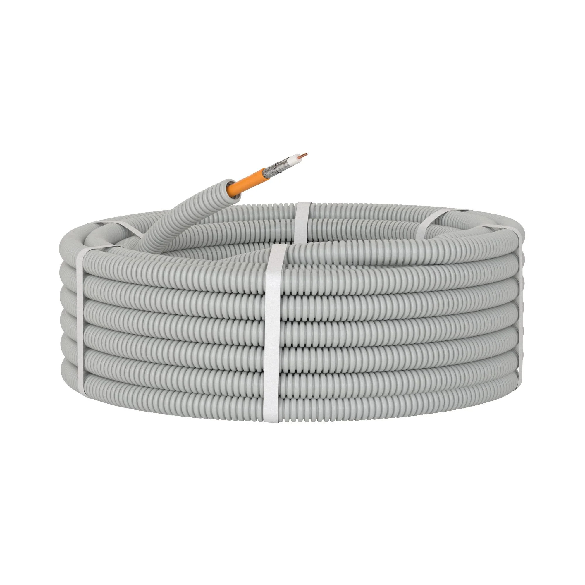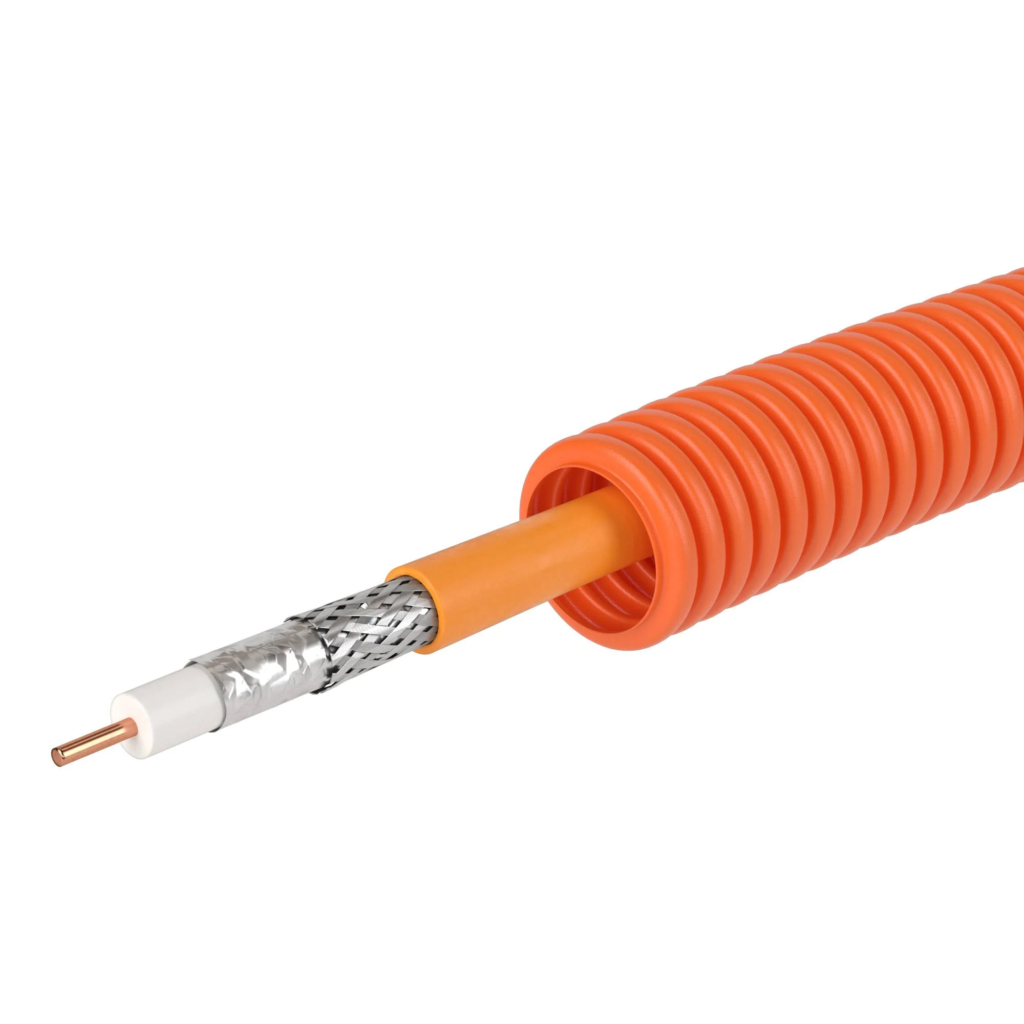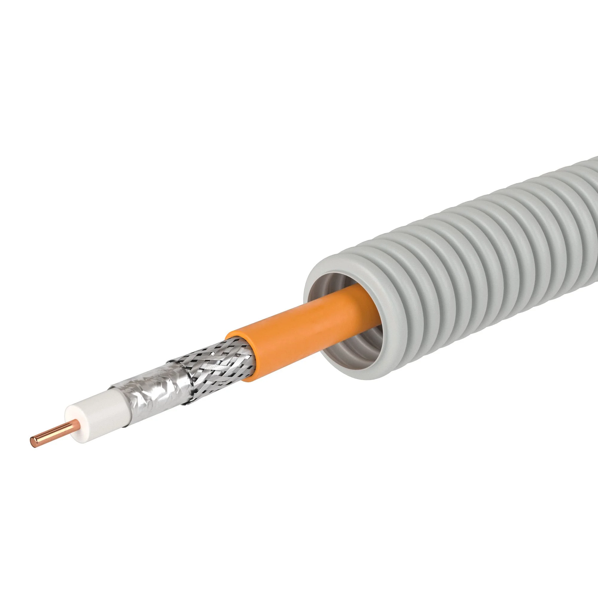 Электротехнические гибкие гофрированные трубы из ПНД используются для скрытой прокладки в штробах стен, стяжке полов, при монолитном бетоностроении. Электротруба — это гофрированная труба с уже протянутым внутри коаксиальным кабелем SAT нг(А)-HF. Такое решение значительно сокращает время монтажа и предупреждает возможное повреждение кабеля при протяжке. Характеристики кабеля: класс экранирования — А, диаметр по изоляции — 4,8 […]