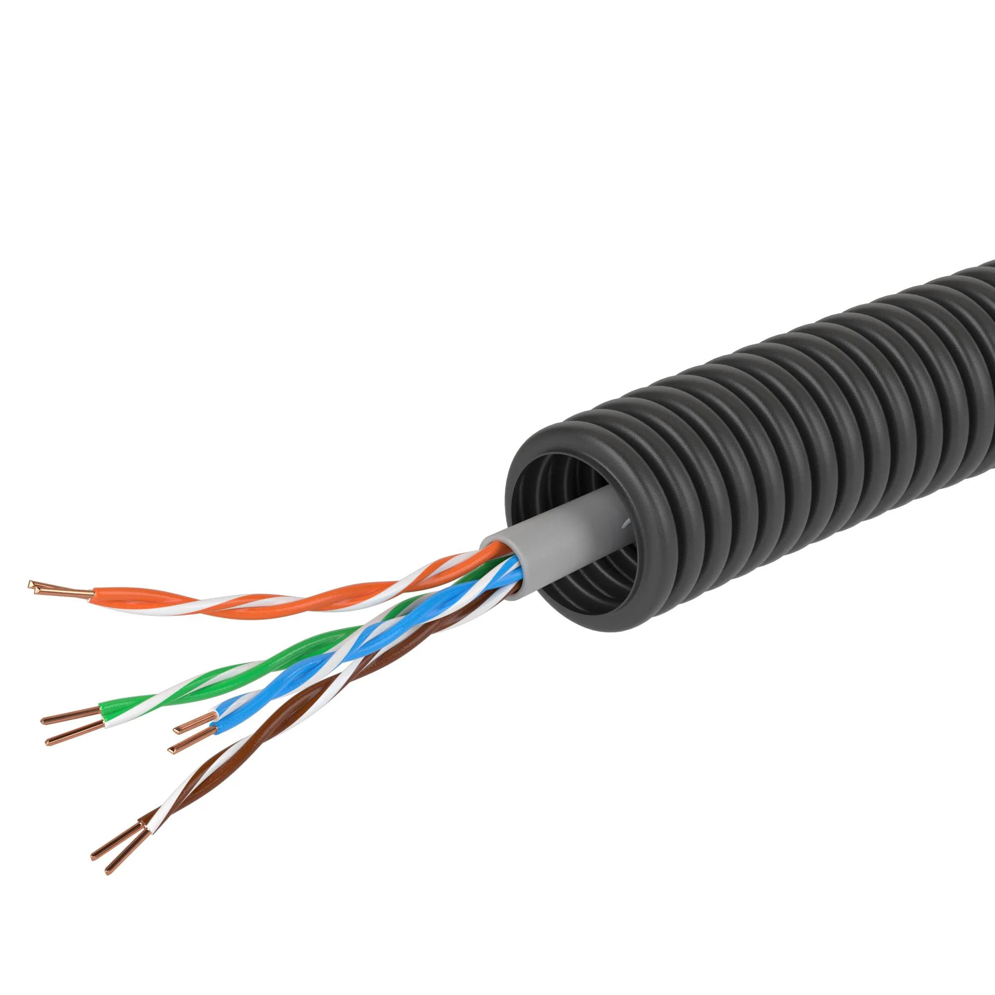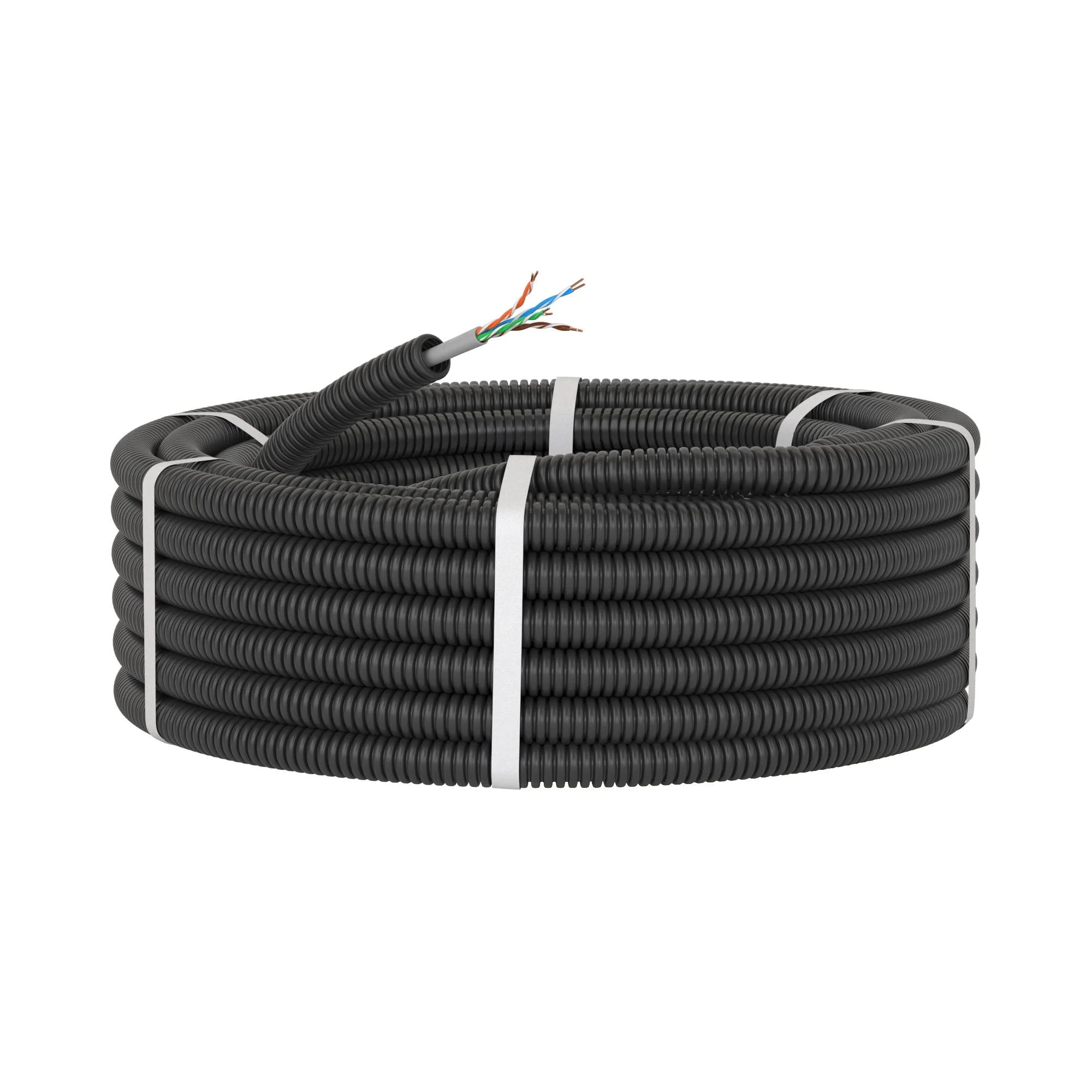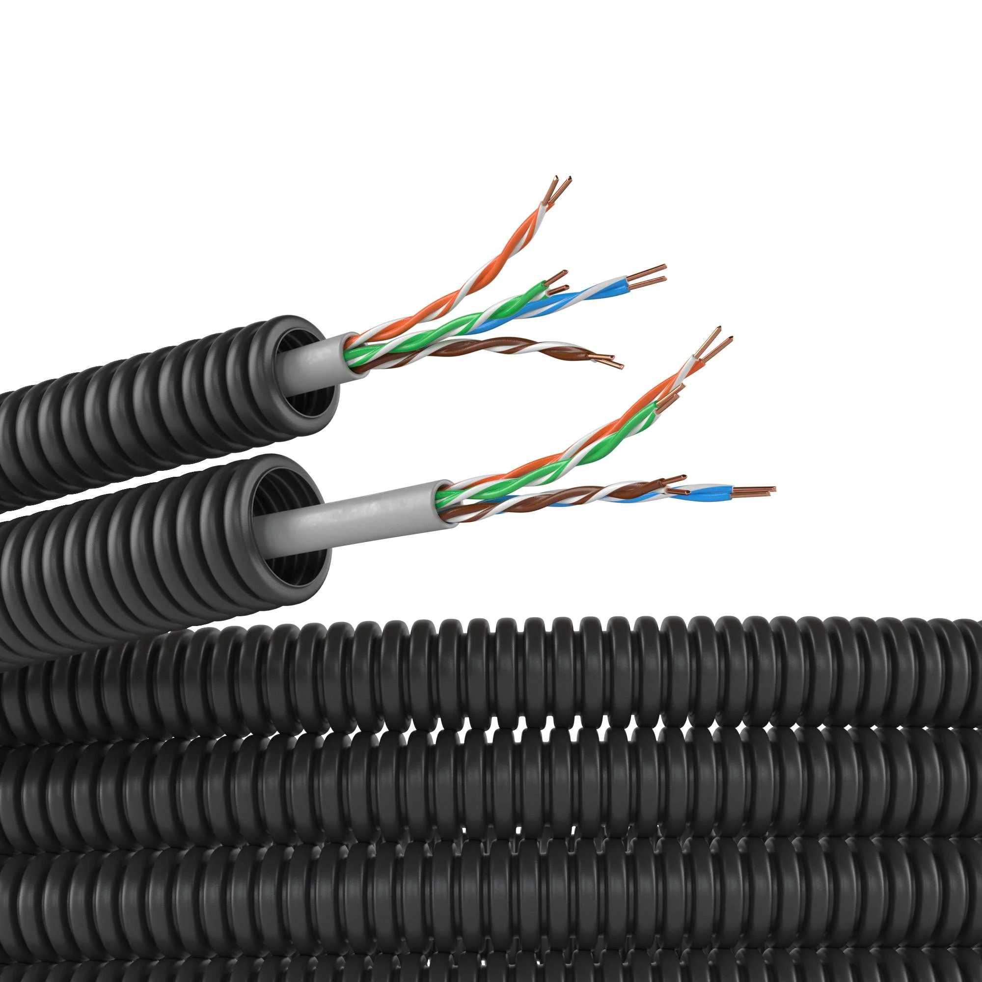 DKC Электротруба ПНД гибкая гофрированная д. 16 мм, цвет черный, с кабелем витая пара 5EU/UTP нг(А)-HF, 100 м