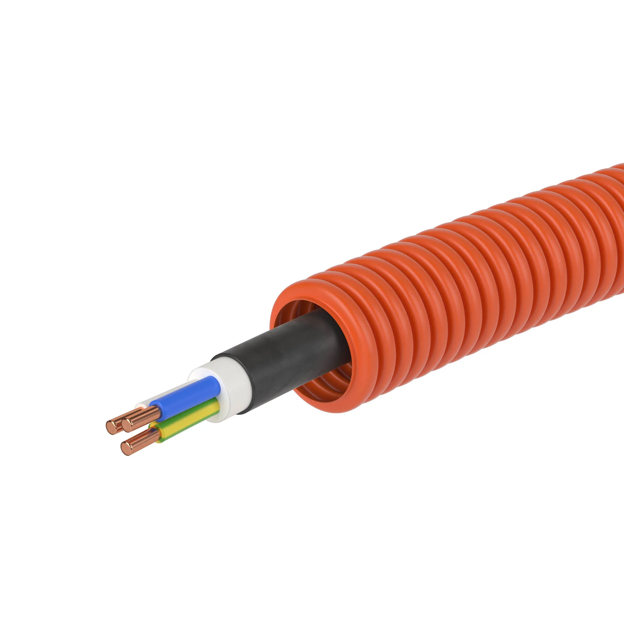 Электротруба — это труба с уже протянутой электропроводкой. Электротрубы ДКС выпускаются с различными вариантами кабеля. Материал — полиэтилен низкого давления. Диаметр — 16 мм. Цвет — оранжевый. Кабель — ВВГнг(А)-LS 3х1,5мм² РЭК «ГОСТ+».