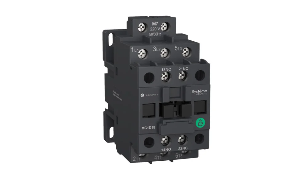 Контактор серии SystemePact MC1D на номинальный ток 9 А, 3P, 1НО+1НЗ; напряжение управления – 220 В пер. тока; крепеж – на DIN-рейке или монтажной плате. Контакторы серии SystemePact MC1D разработаны для управления двигателями различных типов, а также насосами, лифтов и системами вентиляции. Они имеют увеличенный электрический и механический ресурс; могут оснащаться дополнительными контактами, тепловыми реле, […]