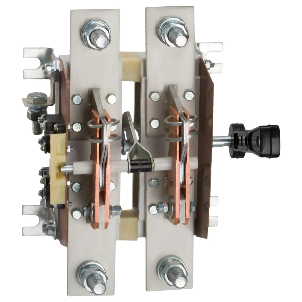 Выключатель-разъединитель 2 полюсный на номинальный ток 1600 А, где установлена несъемная рукоятка, а механическая износостойкость составляет 6300 циклов.