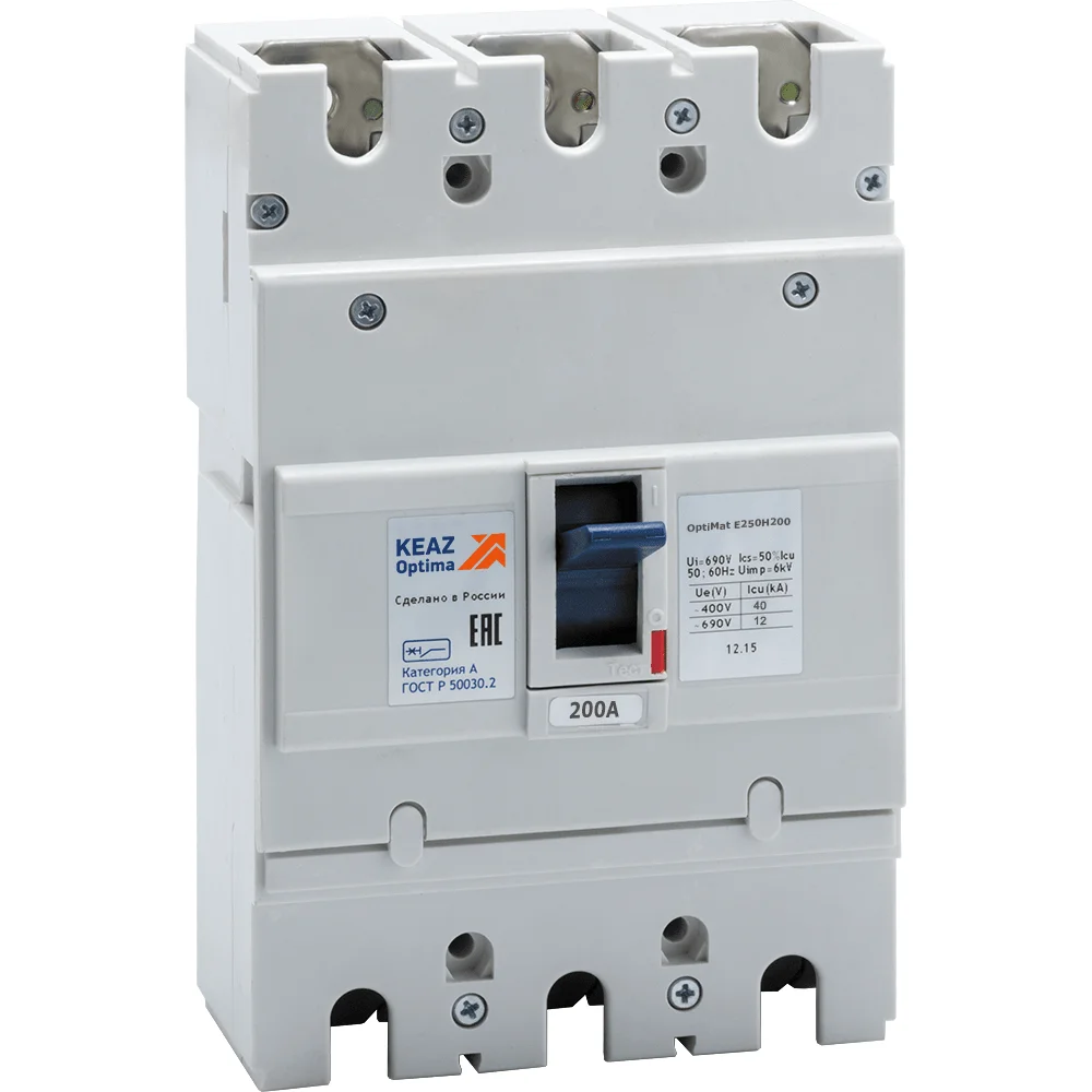 Блочный автоматический 3 полюсный выключатель переменного тока с предельной коммутационной способностью при переменном токе 20 кА на номинальный ток 200 А .