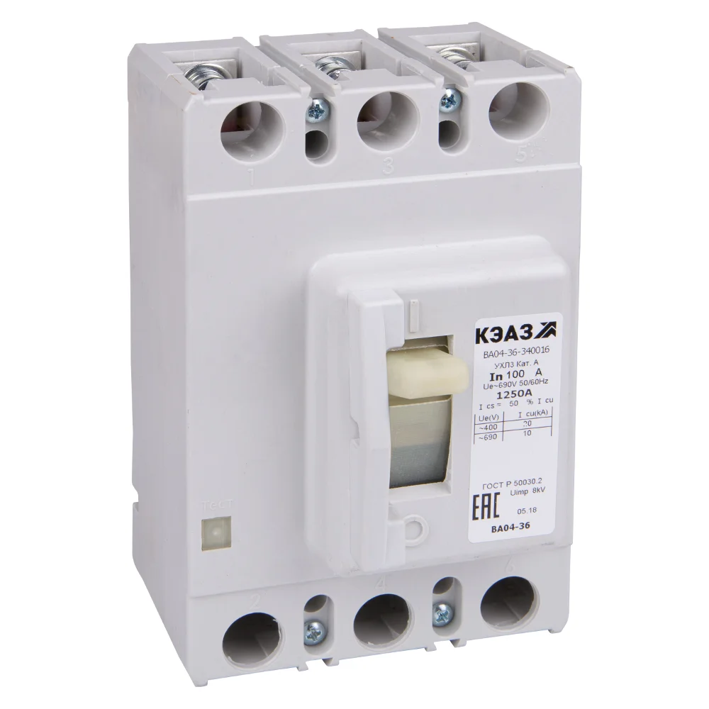 Блочный автоматический 3 полюсный выключатель переменного тока с предельной коммутационной способностью при переменном токе 20 кА на номинальный ток 80 А .