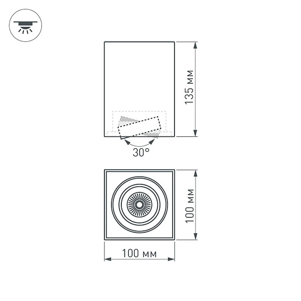 Накладной светильник 11Вт, белый квадратный корпус. Цвет ДНЕВНОЙ БЕЛЫЙ 4000K, св.поток 850лм, CRI(Ra)>80, угол 40°, регулируемое направление луча 30°. Размер 100x100x135 мм. Питание AC 220-240V, 11Вт, драйвер встроенный (DC500mA 12-24V).