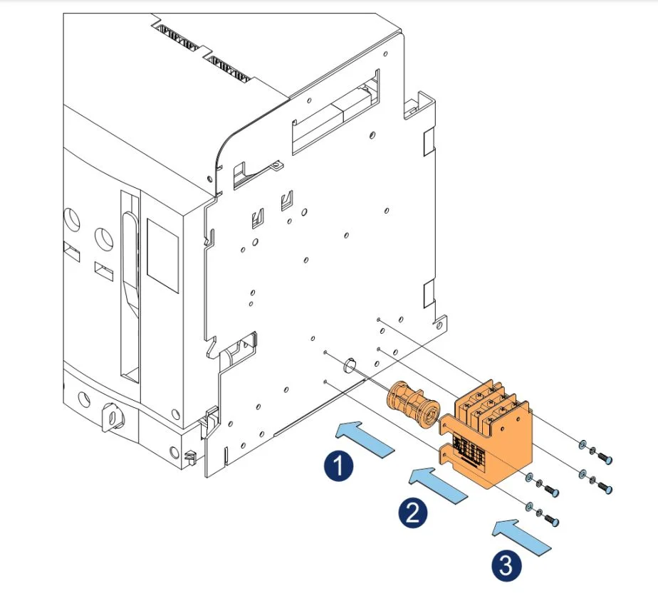 Аксессуар AUX-MDEL, информирующий о состоянии главных контактов автоматического выключателя. Подходит для серии выключателей MDE.
