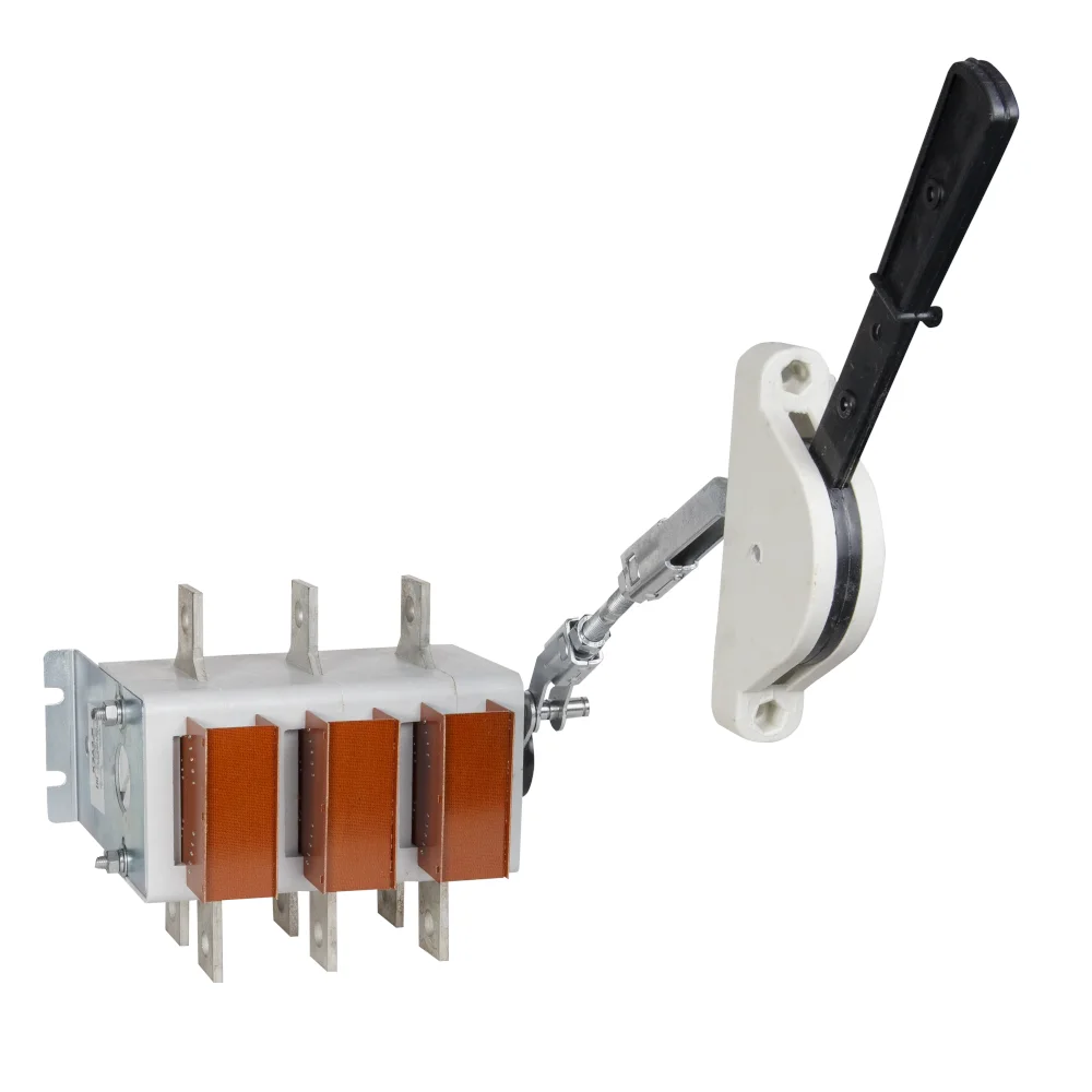 Выключатель-разъединитель 3 полюсный на номинальный ток 630 А, в котором установлена несъемная рукоятка.