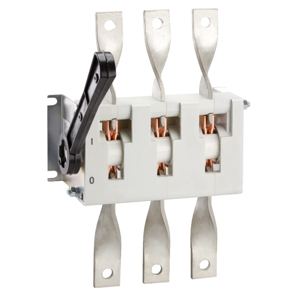 Выключатель-разъединитель 3 полюсный на номинальный ток 630 А, в котором установлена несъемная рукоятка.
