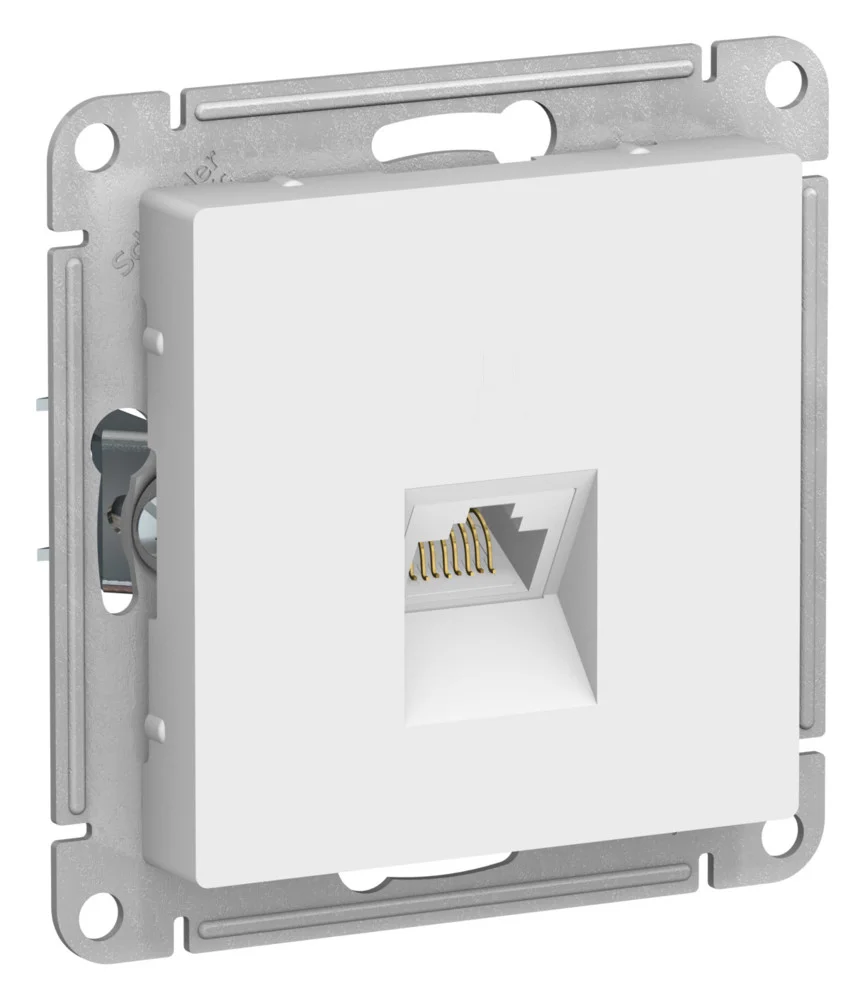 Механизм Systeme Electric (ранее Schneider Electric) серии Glossa (цвет белый) двойной розетки разъёмами RJ45 категория 5е и RJ11 предназначен для удобного и быстрого подключения вашего компьютера и телефона к соответствующим сетям. — Выполнен из материала PС+ASA, стойкого к УФ-излучению и появлению царапин.
